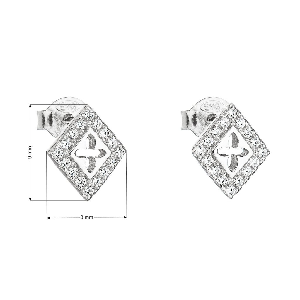 Parametre strieborných náušníc pecka so zirkónom biely kosoštvorec 11041.1