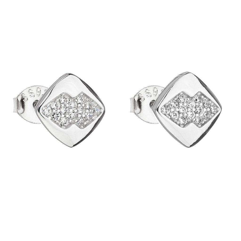 Strieborné náušnice pecka so zirkónom biely kosoštvorec 11102.1