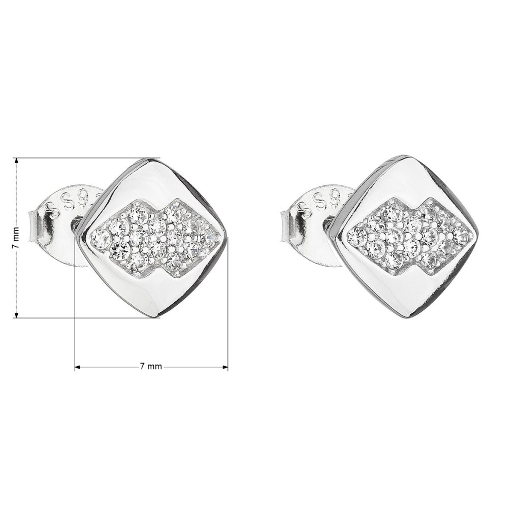 Parametre strieborných náušníc pecka so zirkónom biely kosoštvorec 11102.1