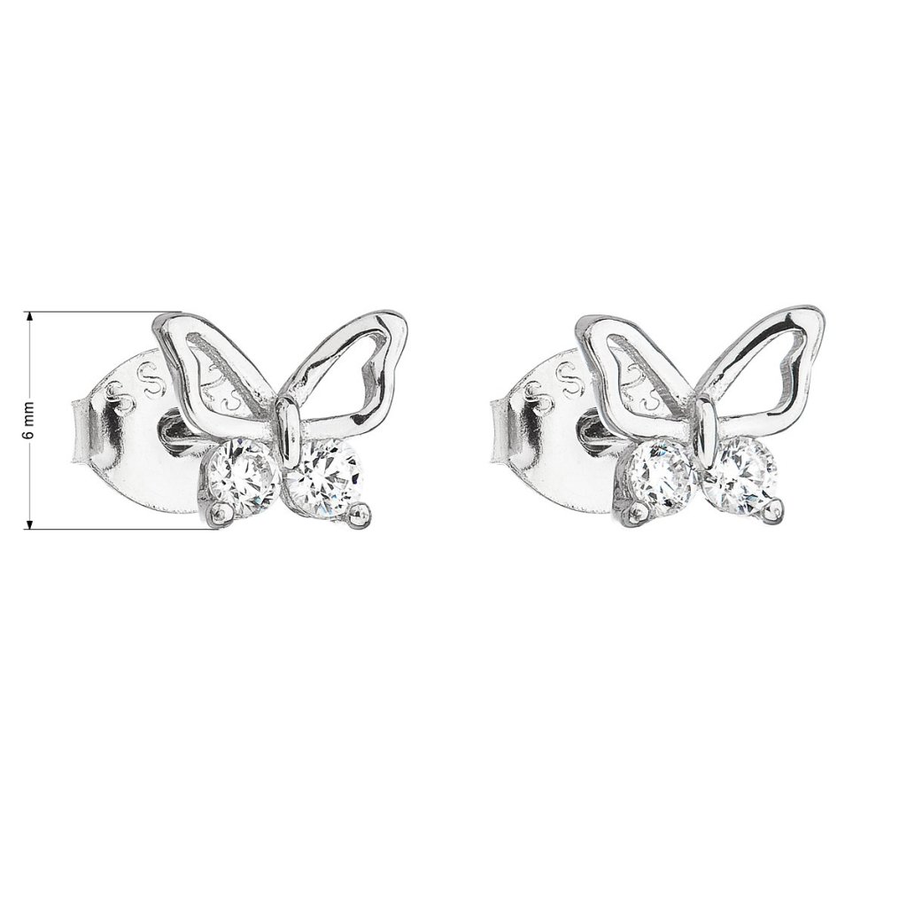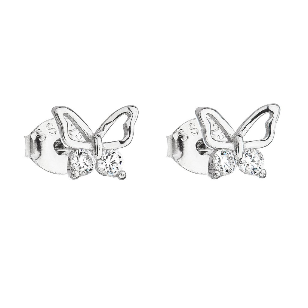 Strieborné náušnice pecka so zirkónom biely motýľ 11036.1