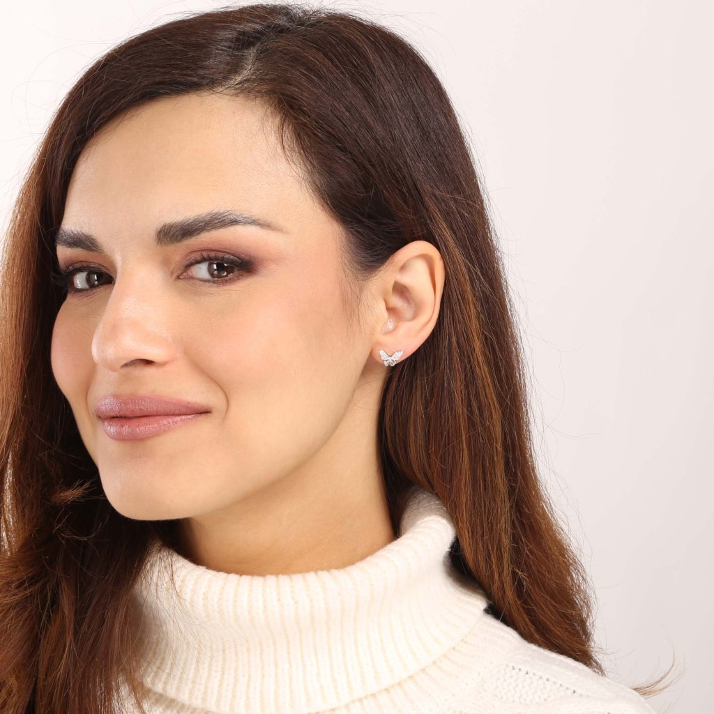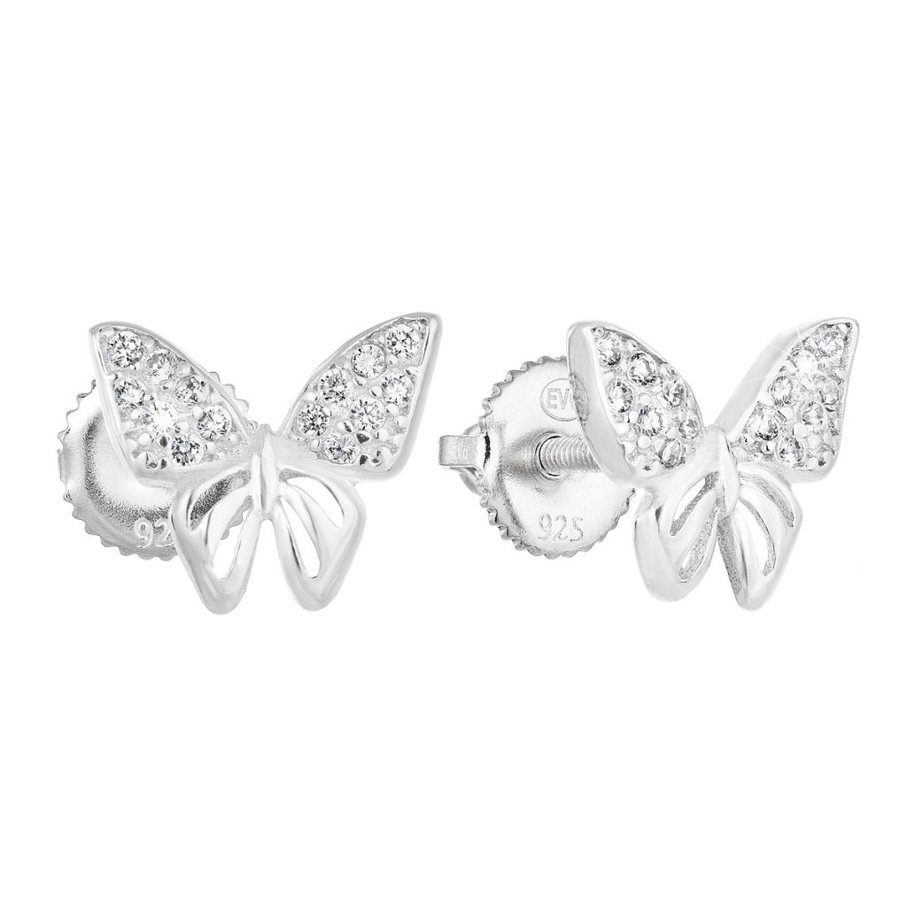 Strieborné náušnice pecka so zirkónom biely motýľ 11311.1