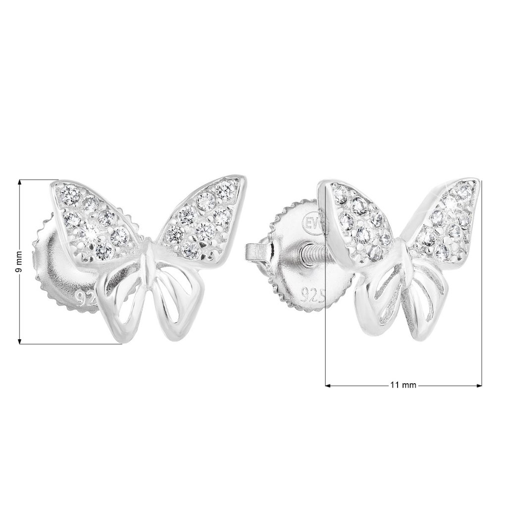 Parametre strieborných náušníc pecka so zirkónom biely motýľ 11311.1