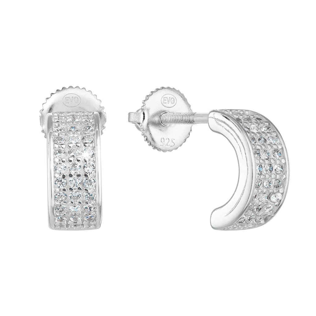Strieborné náušnice pecka so zirkónom biely polkruh 11254.1