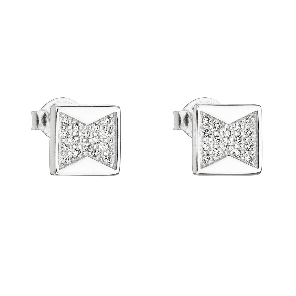 Strieborné náušnice pecka so zirkónom biely štvorec 11043.1