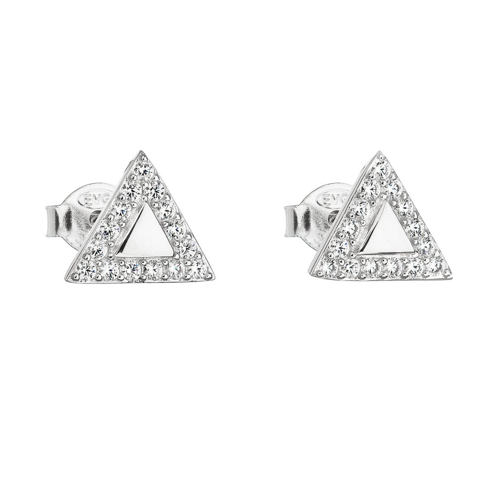 Strieborné náušnice pecka so zirkónom biely trojuholník 11042.1