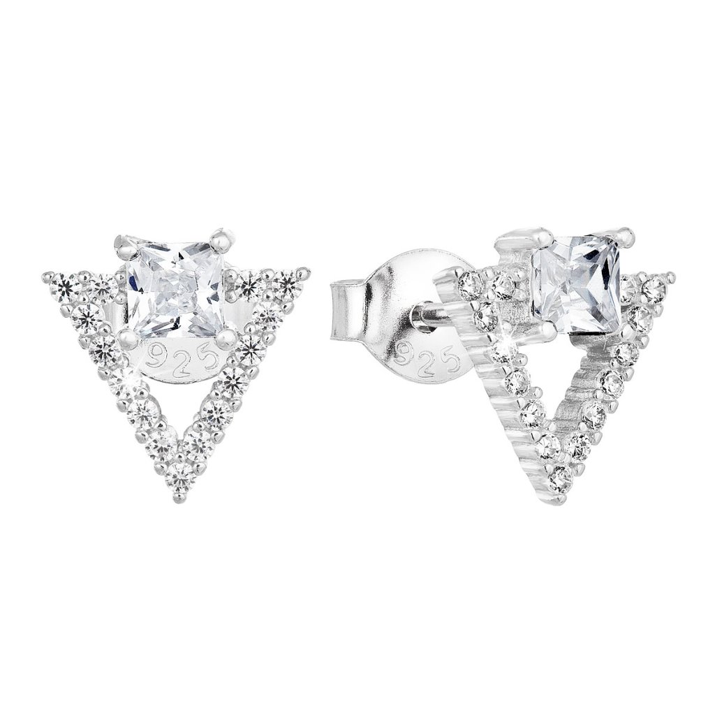 Strieborné náušnice pecka so zirkónom biely trojuholník 11150.1