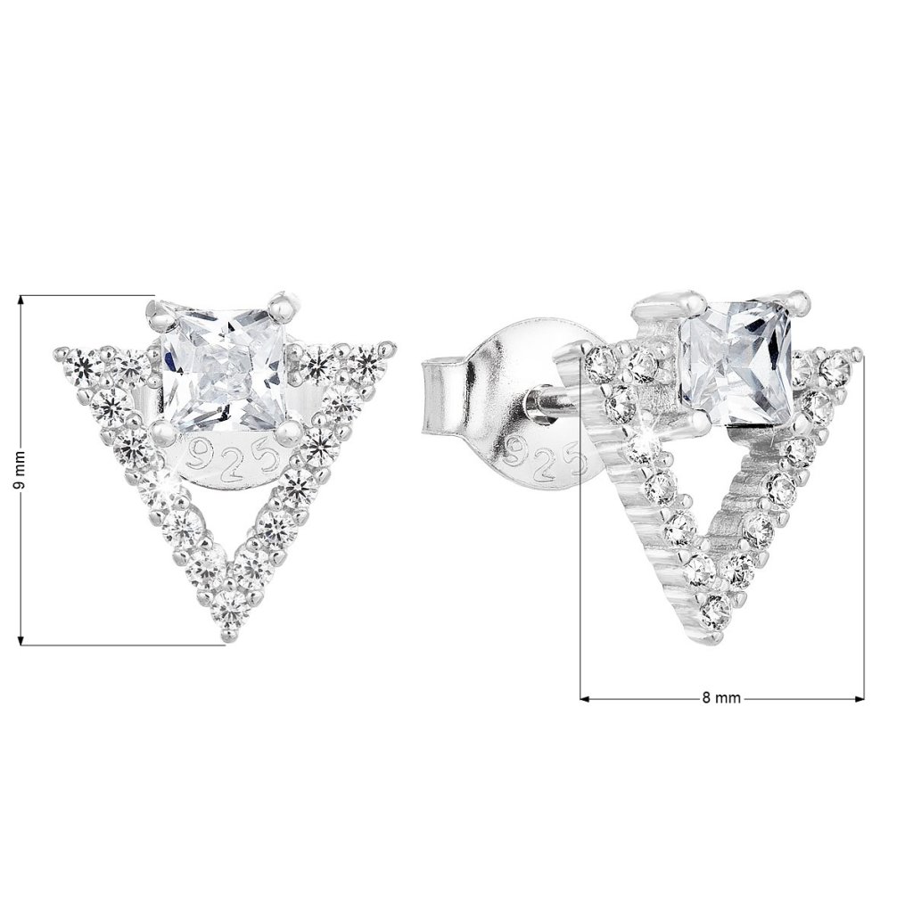 Parametre strieborných náušníc pecka so zirkónom biely trojuholník 11150.1