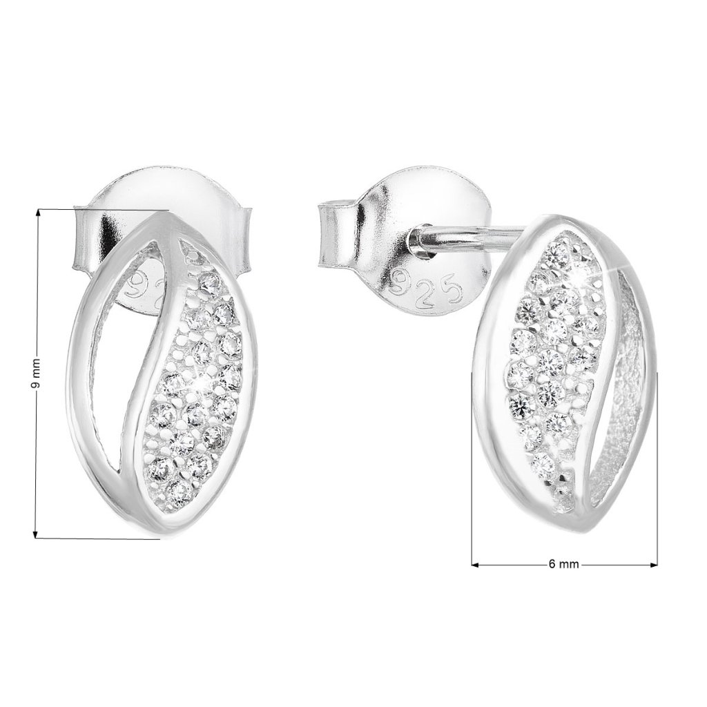 Parametre strieborných náušníc pecka so zirkónom v bielej farbe 11011.1