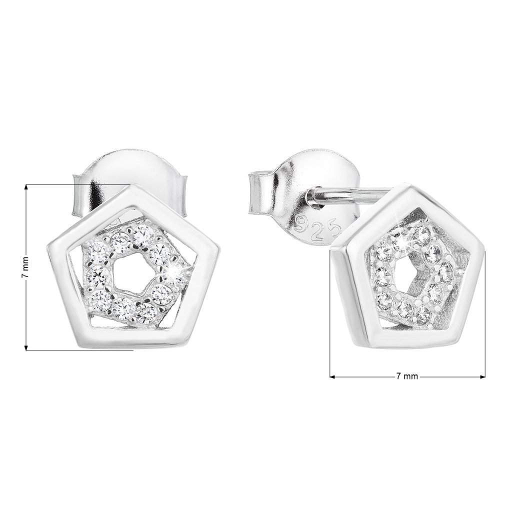 Náušnice tvoria dva päťuholníky. Jeden veľký a jeden malý. Málý päťuholník je zdobený po celom svojom obvode bielymi zirkónmi , ktoré dodajú náušniciam dokonalý vzhľad. Zapínanie na puzetu zabráni strate náušníc. Veľkosť náušnice je 7 mm.