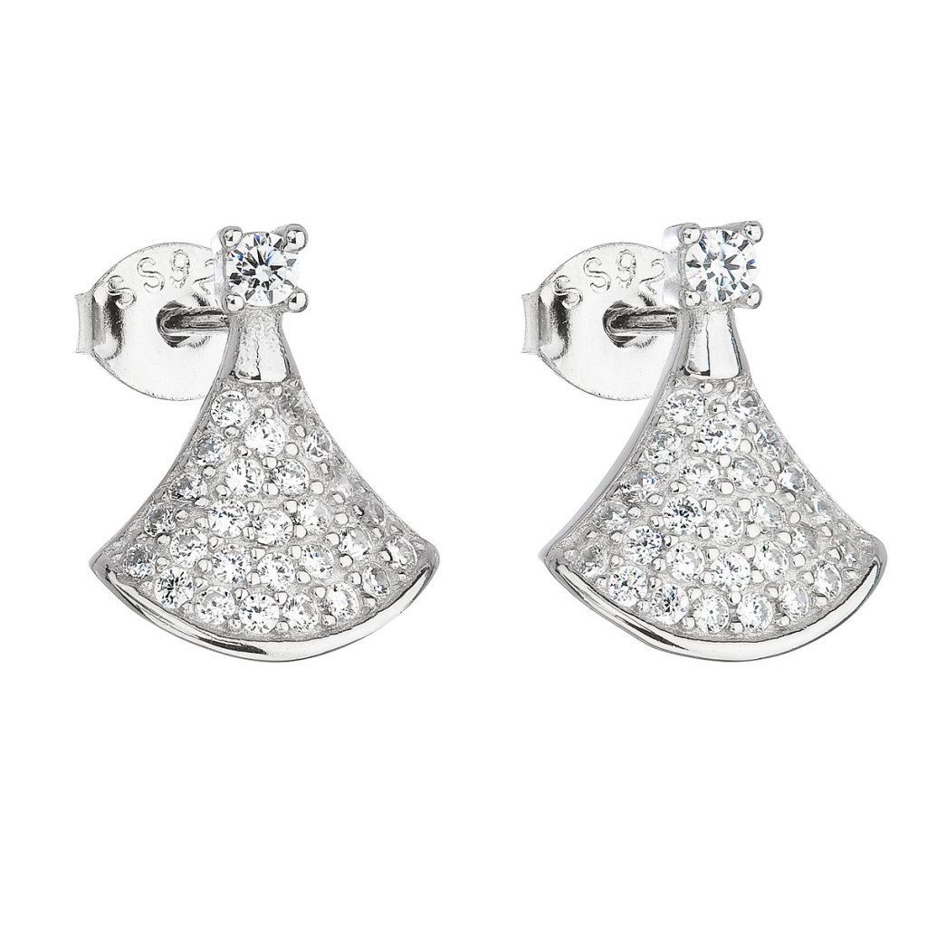 Strieborné náušnice pecka so zirkónom v bielej farbe 11044.1