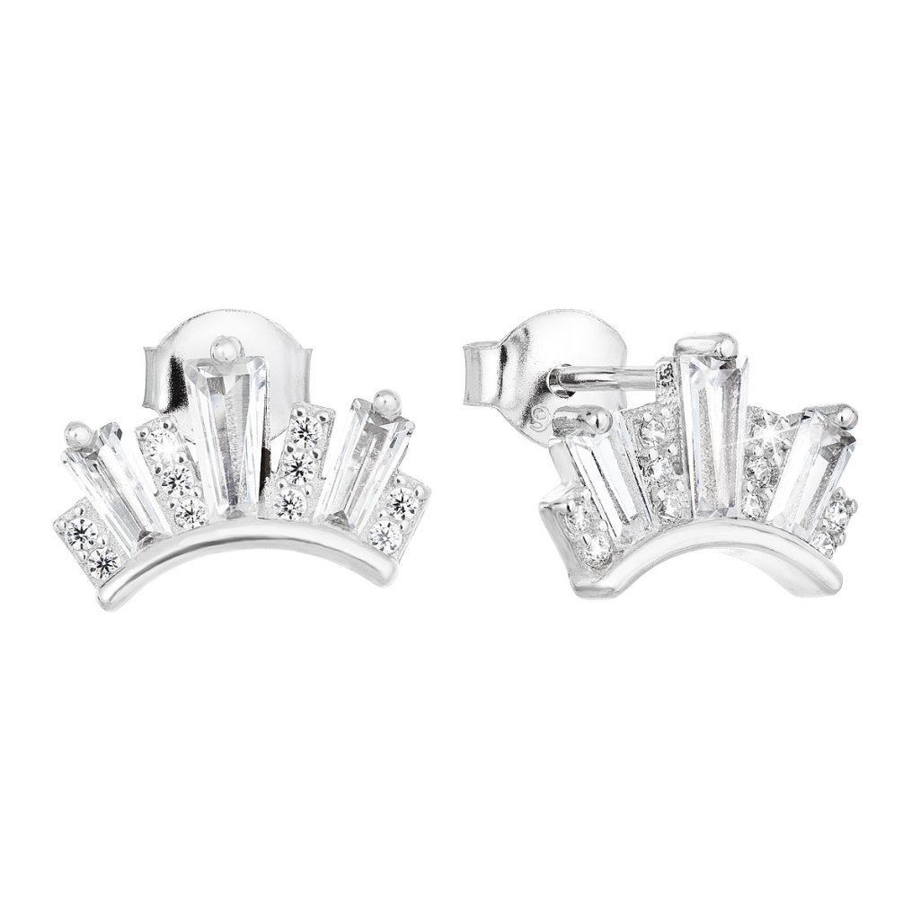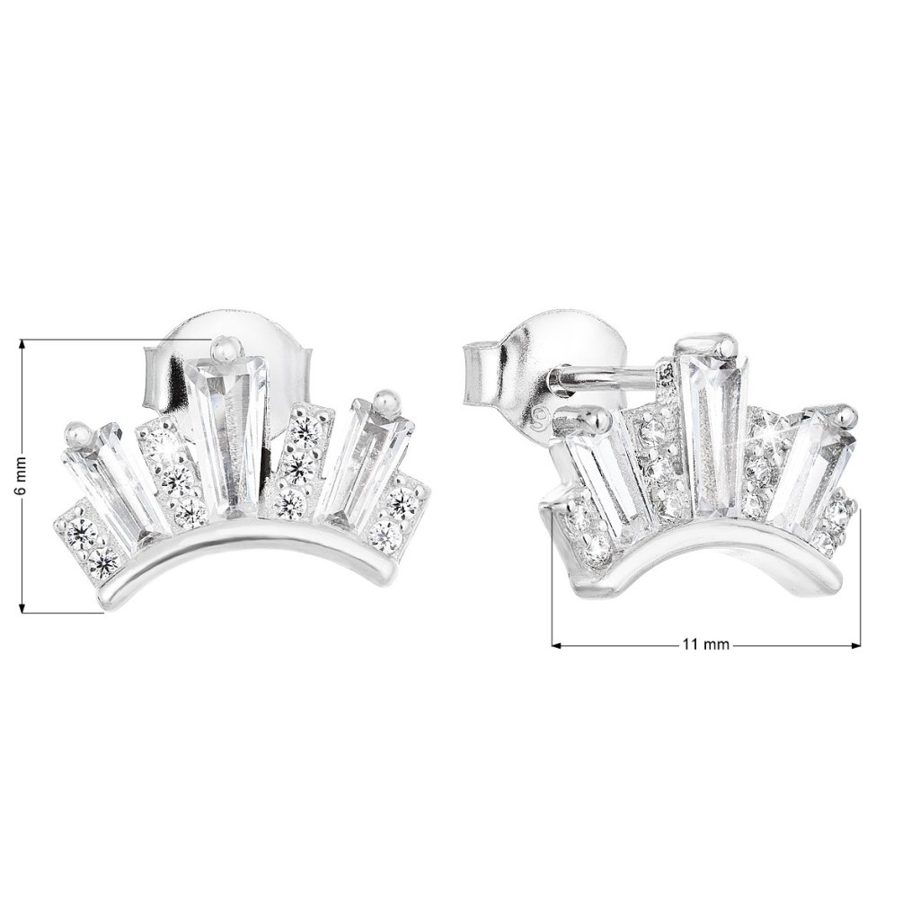 Parametre strieborných náušníc pecka so zirkónom v bielej farbe 11049.1