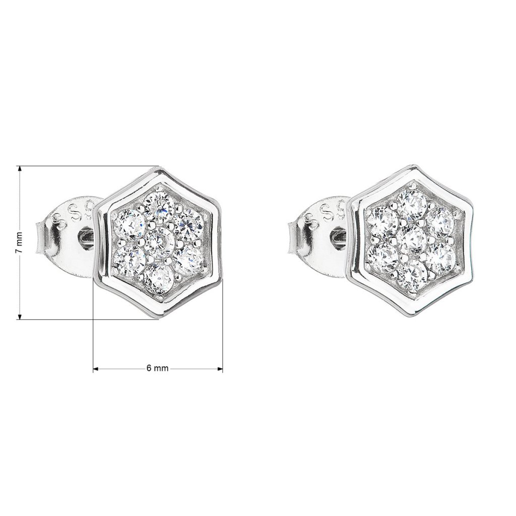 Parametre strieborných náušníc kôstok so zirkónom v bielej farbe 11086.1
