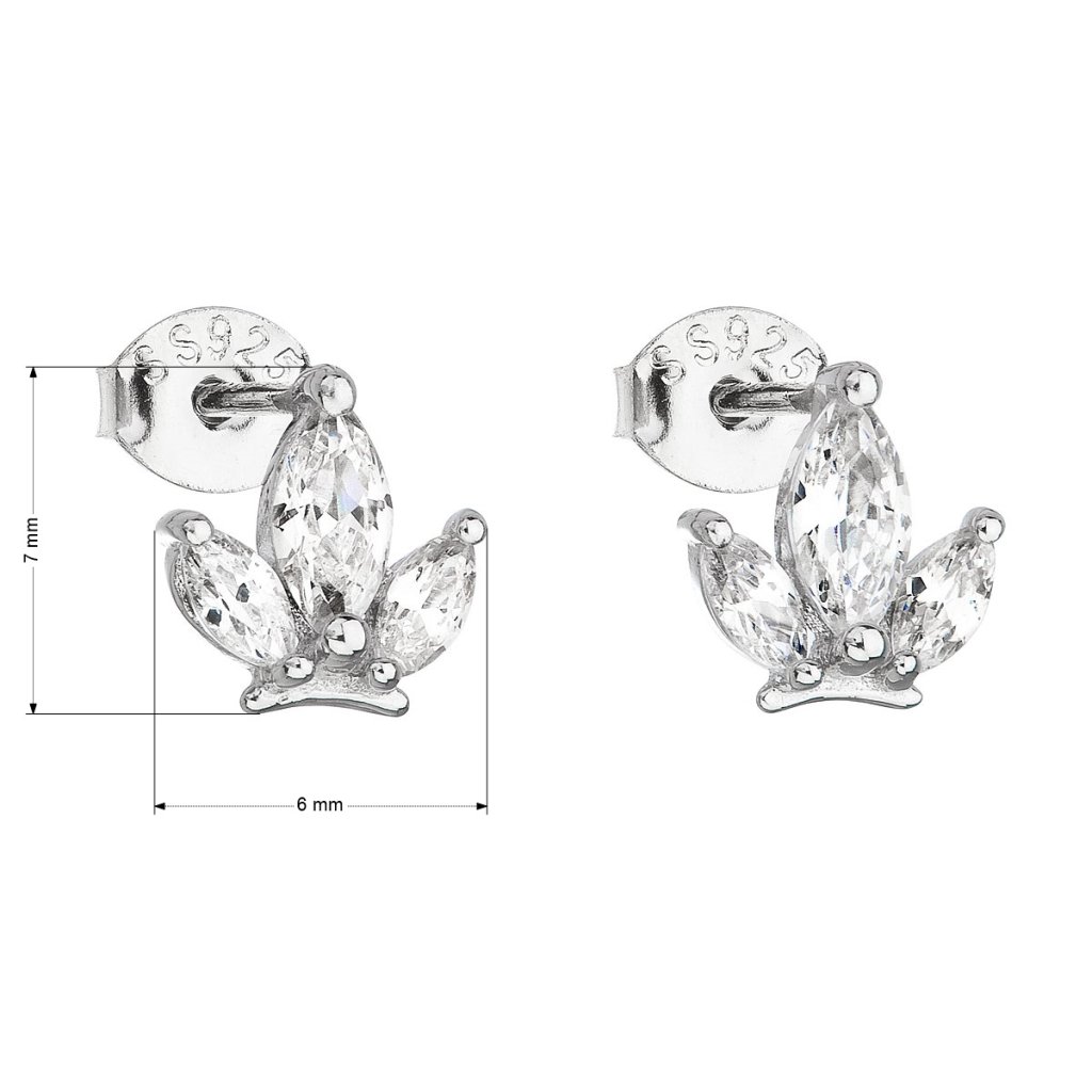 Parametre strieborných náušníc pecka so zirkónom v bielej farbe 11110.1