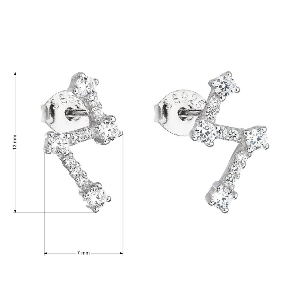 Náušnice zdobia číre zirkóny poskladané na striebornom blesku. Náušnice zapnete na puzetu, vďaka ktorej pekne držia na uchu.