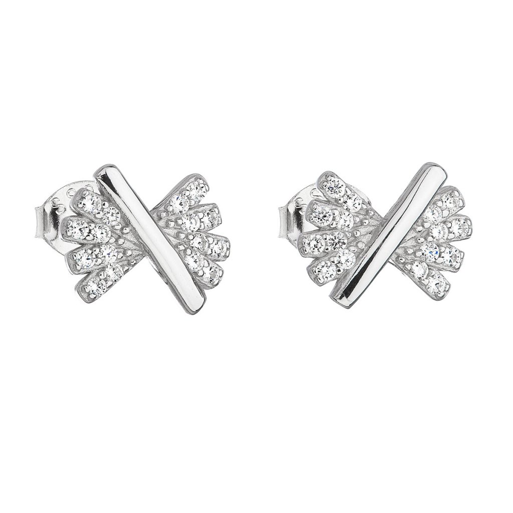 Náušnice zdobia číre zirkóny usadené na rozkmitaných čiarkach, prostredná čiara je ponechaná iba čisto strieborná. Náušnice zapnete jednoducho na puzetu.