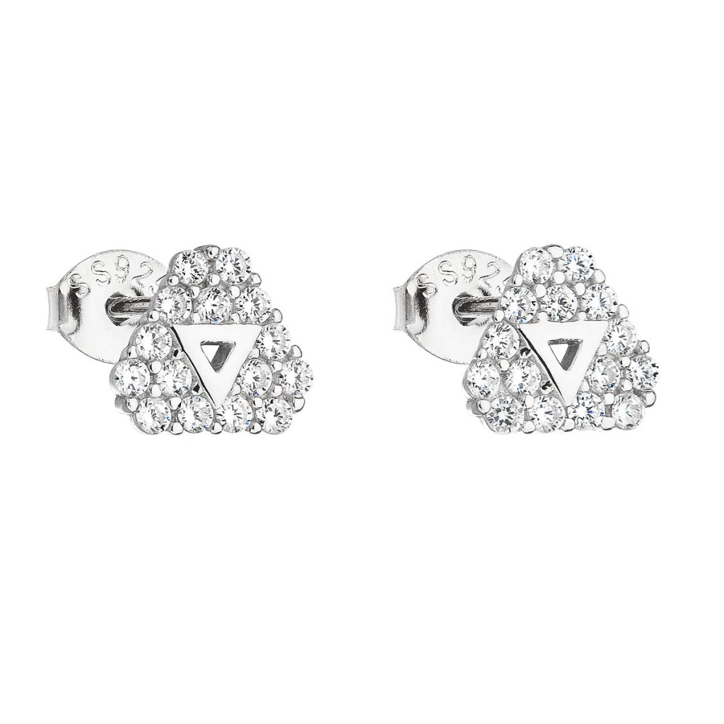Náušnice zdobia malinké číre zirkóny , ktoré sú ozvláštnené trojuholníkom uprostred. Náušnice zapnete na puzetu.