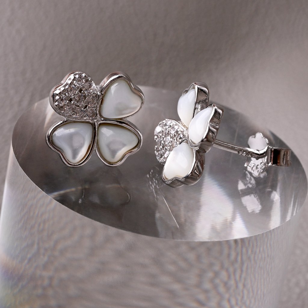 Strieborné náušnice perleťové štvorlístky 11800.1