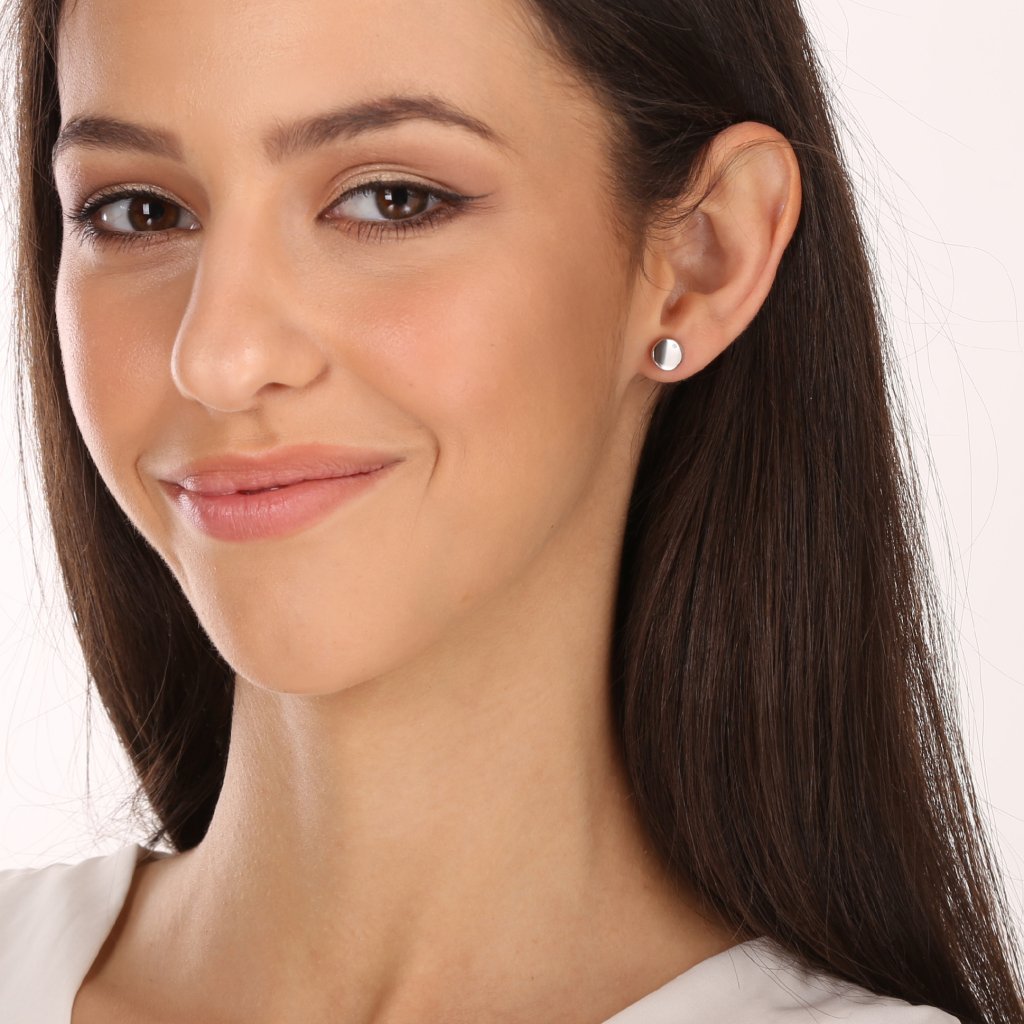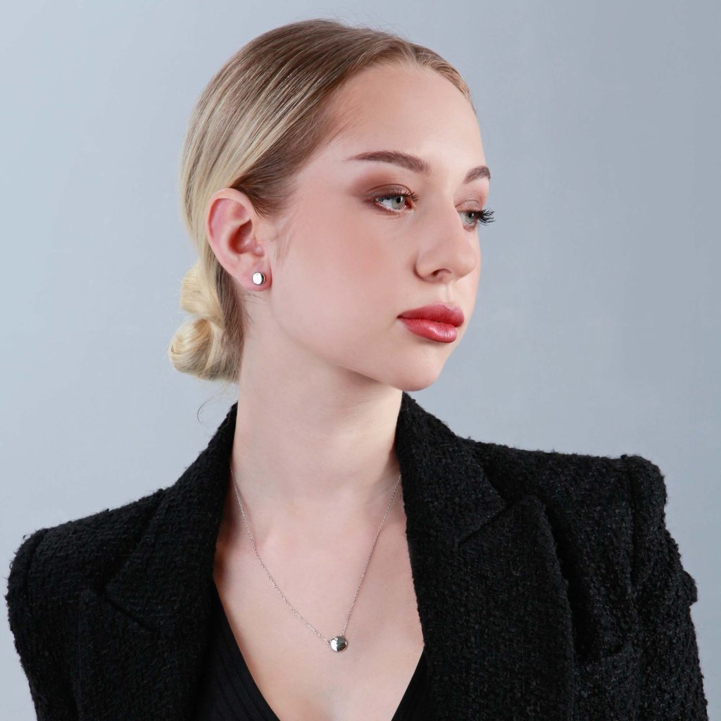 Lesklé placky, s povrchom starostlivo lešteným do vysokého lesku, sú minimalistickým prvkom, ktorý vyžaruje čistotu a jednoduchosť. Okrúhly tvar s priemerom 8 mm symbolizuje celistvosť a harmóniu. Drobný zirkón priťahuje pozornosť a dodáva šperku nádych luxusu.