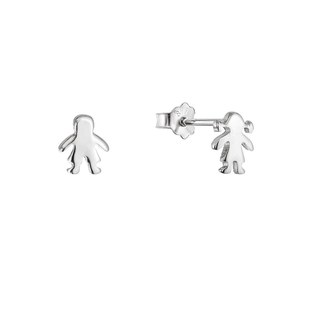 Tieto strieborné puzetové náušnice sú naozaj neobvyklé. Na jednej z nich je vyobrazená postava dievčatka s veselými vrkôčikmi a na druhej je postava rozverného chlapčeka.Sú vyrobené zo striebra o rýdzosti 925/1000 a sú opatrené vrstvou ródia , ktorá šperk ochráni pred sčernením, zožltnutím alebo poškriabaním a majú klasické zapínanie na puzetu . Sú ľahké a pohodlné, ideálne na každodenné nosenie do práce, školy alebo na iné príležitosti. Skvele doplnia váš outfit a dodajú mu jemný dotyk hravosti.