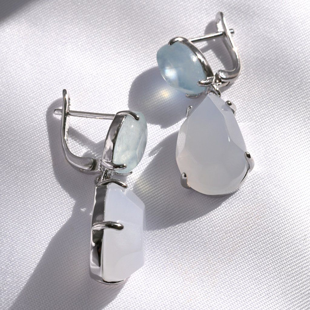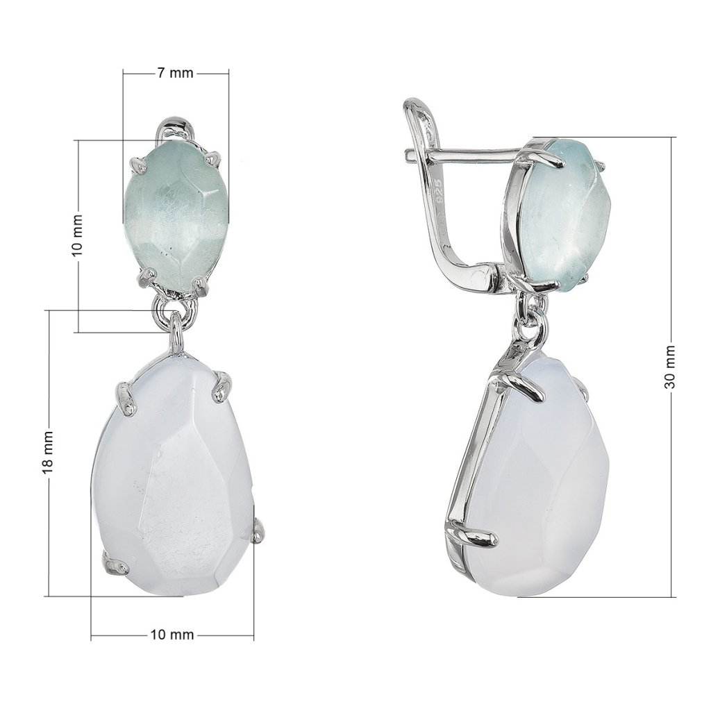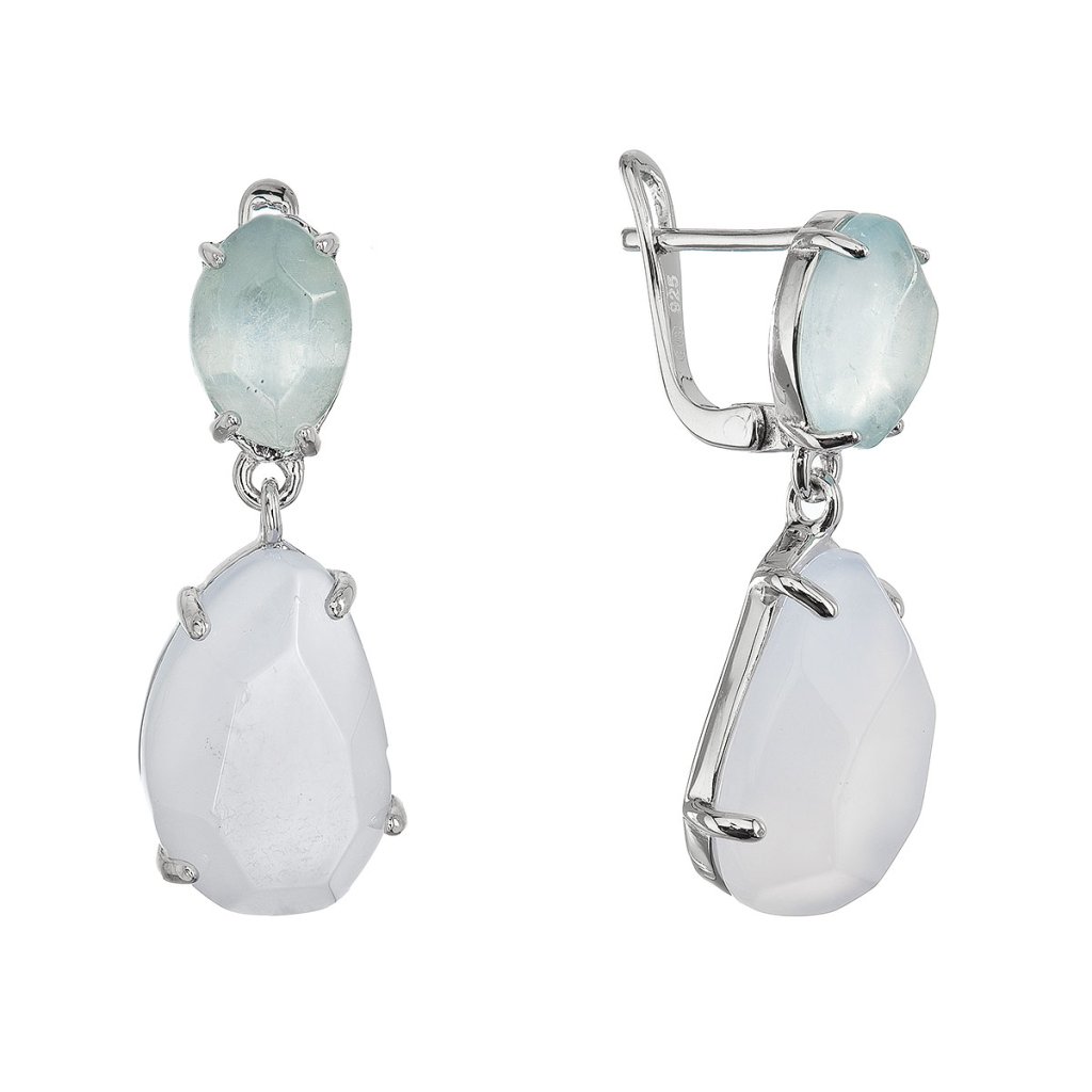 Strieborné náušnice s akvamarínom a chalcedónom 11740.3