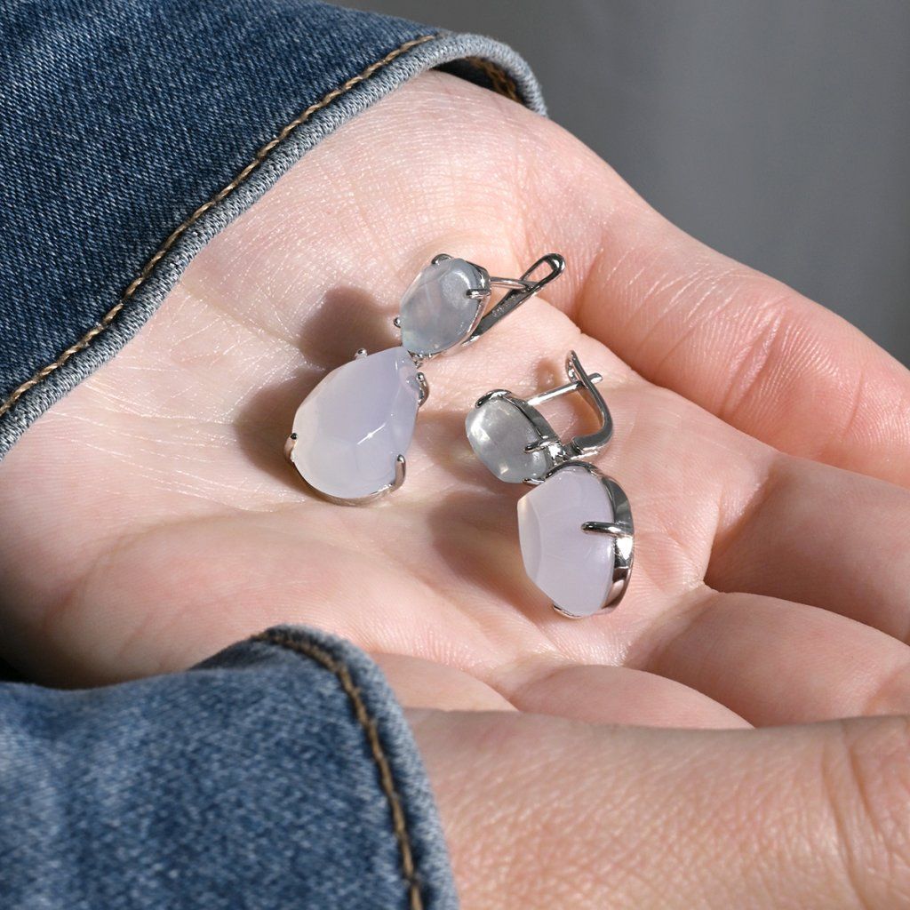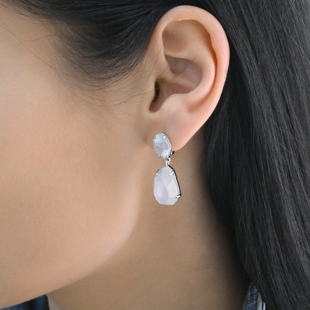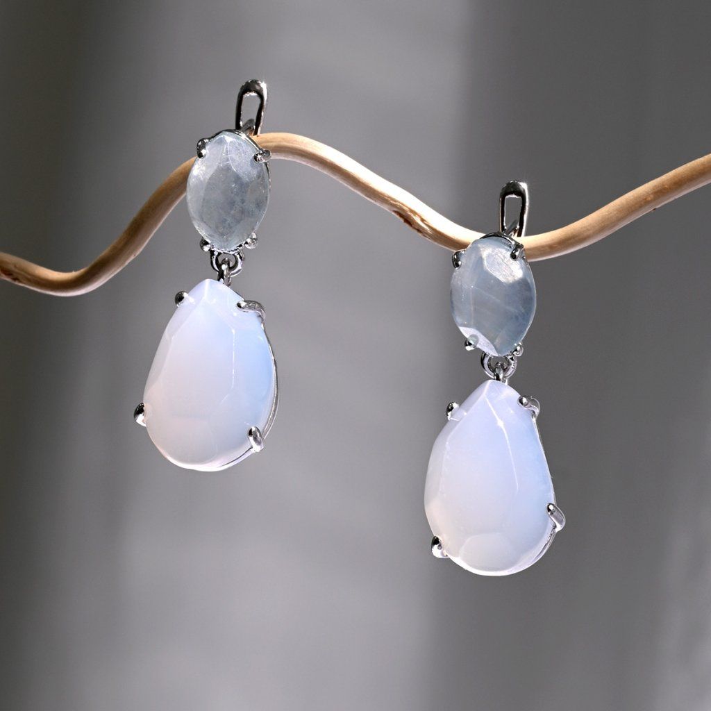 Strieborné náušnice s akvamarínom a chalcedónom 11740.3