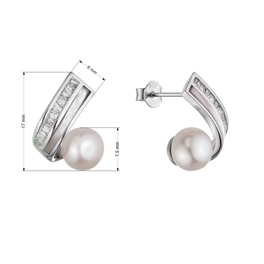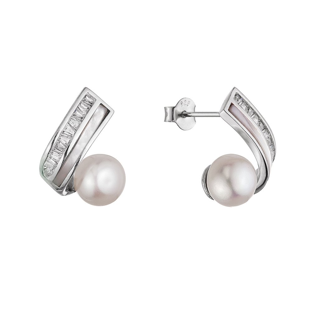 Strieborné náušnice s bielou riečnou perlou a perleťou 21112.1