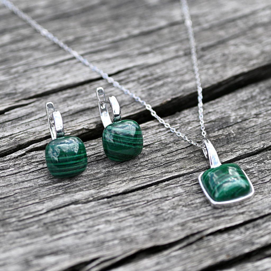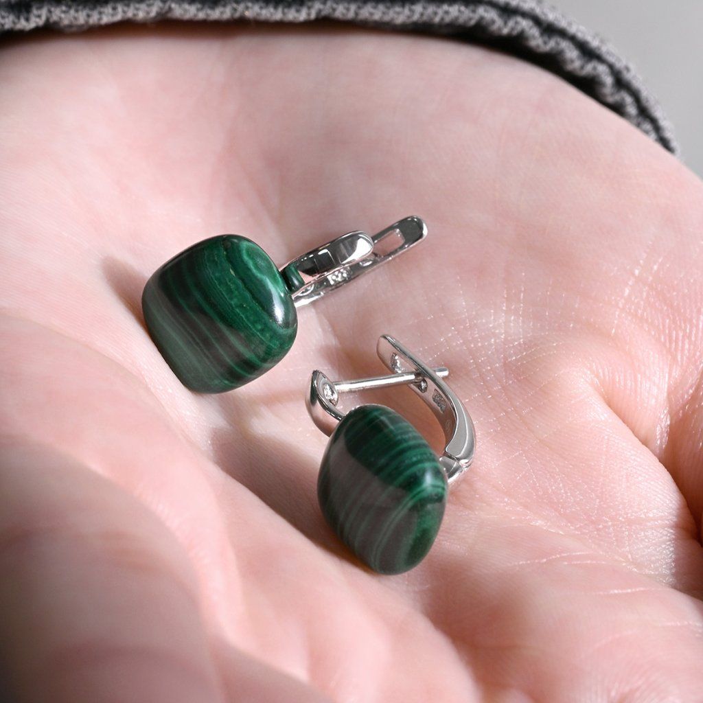 Strieborné náušnice s malachitom 11732.3