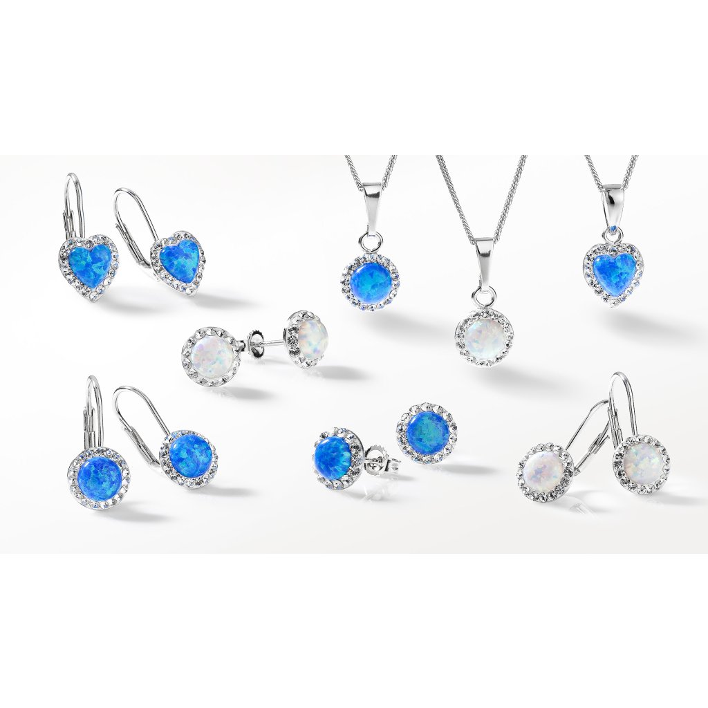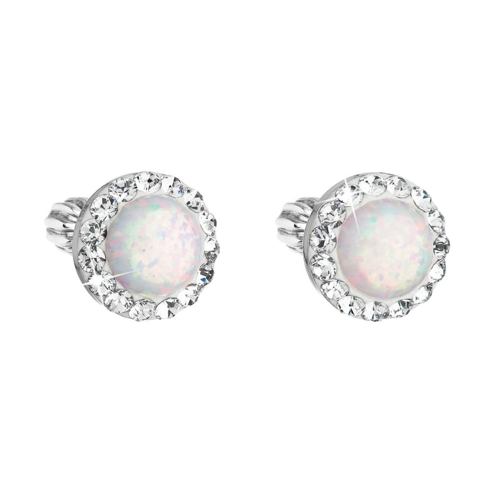 Strieborné náušnice s opálom a kryštálmi Preciosa 31317.1 biele