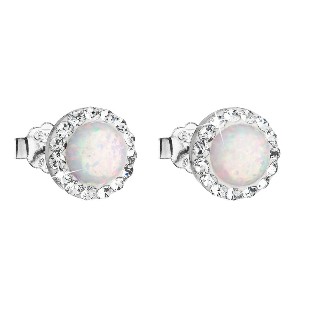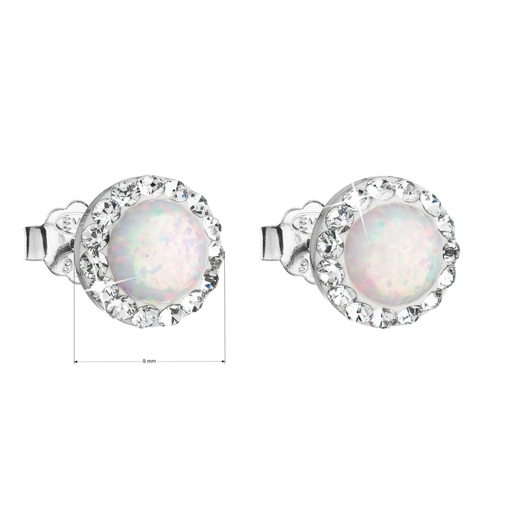 Strieborné náušnice s opálom a Preciosa kryštály 31217.1 biele