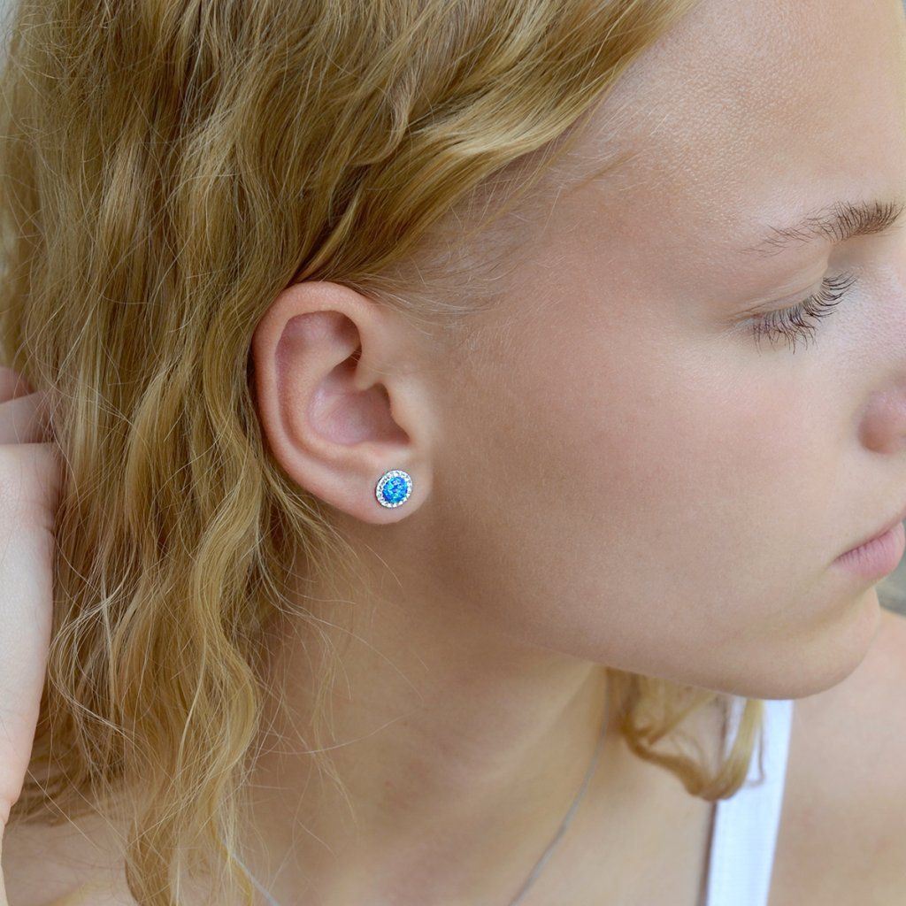 Strieborné náušnice s opálom a Preciosa kryštály 31217.1 modré