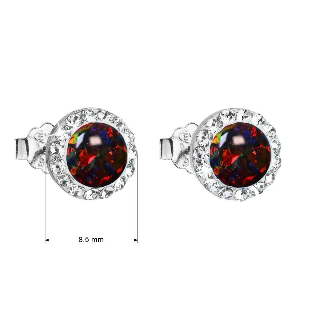 Strieborné náušnice s opálom a Preciosa kryštály 31217.1 ruby