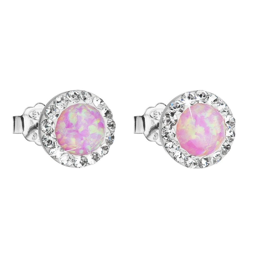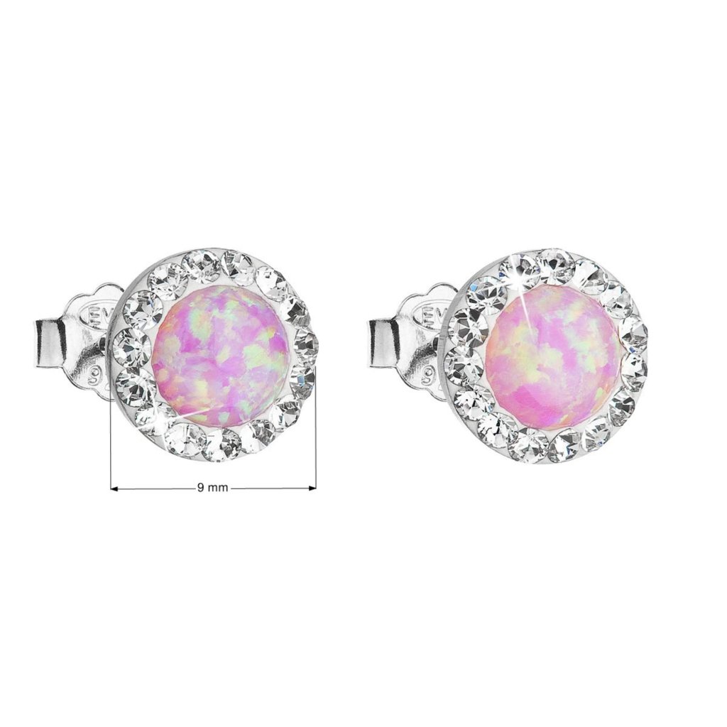 Strieborné náušnice s opálom a Preciosa kryštály 31217.1 ružové