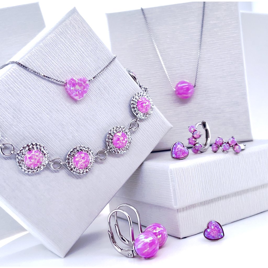 Nežné ako ranné červánky. Tieto strieborné náušnice typu kôstky zdobia okrúhly syntetický opál v ružovej farbe, ktorá sa na svetle premenlivo trblieta jemnými dúhovými odleskami. Od pastelovo ružovej cez tóny broskyňové až po nenápadné fialkové záblesky – každý pohľad odhalí inú vrstvu jemnosti. Okolo centrálneho kameňa sú zasadené drobné číre kryštály Preciosa, ktoré dodávajú náušniciam jemný lesk a eleganciu.