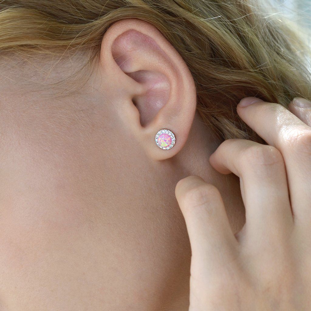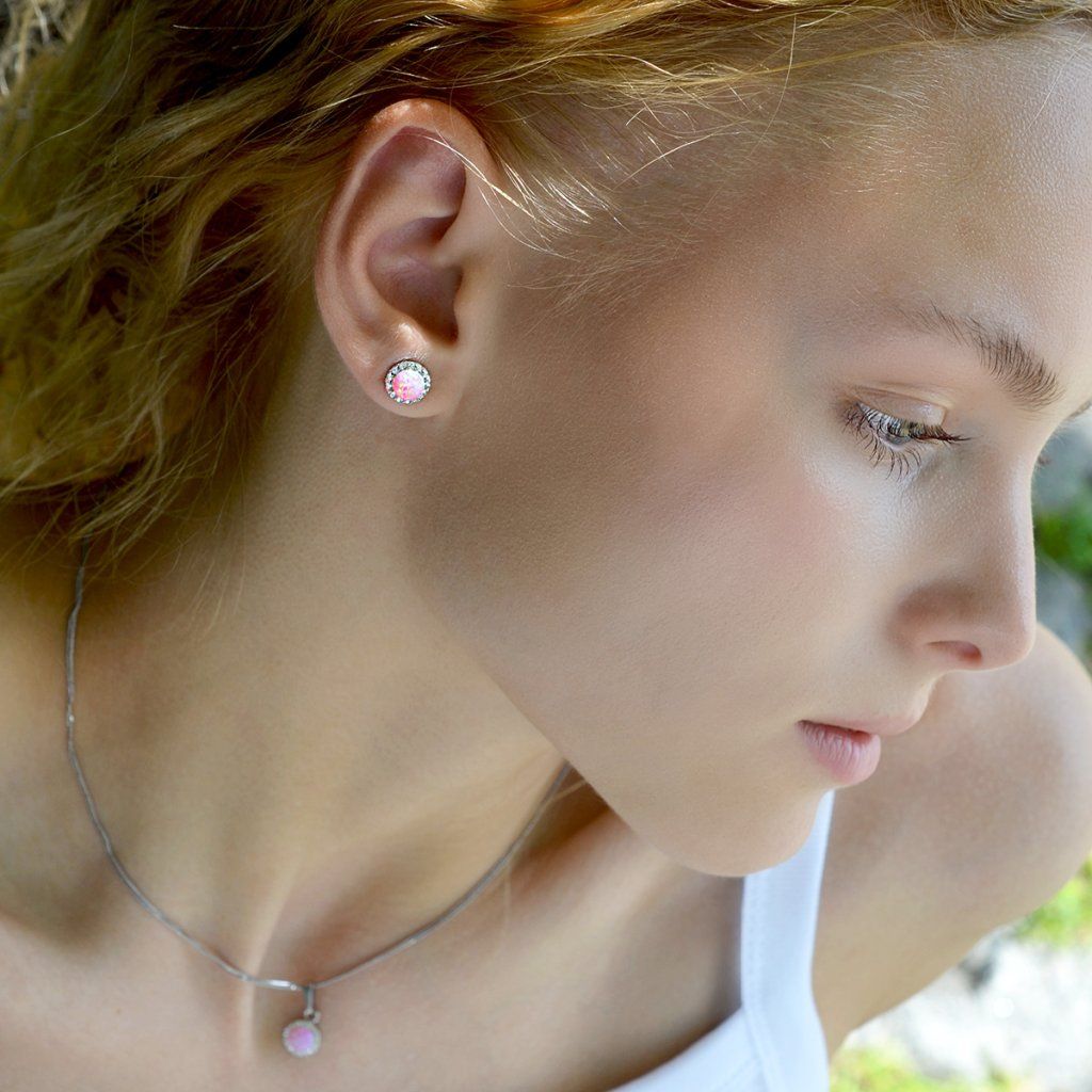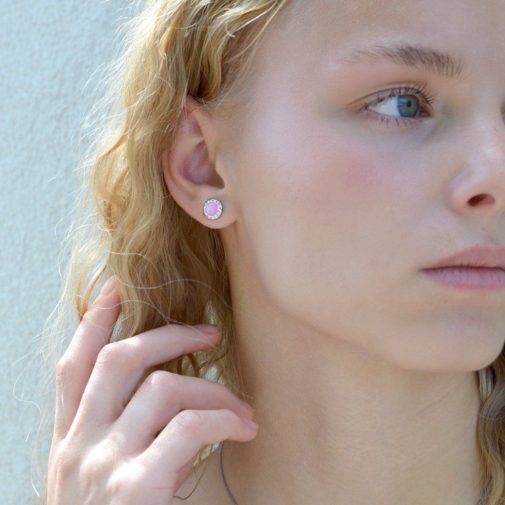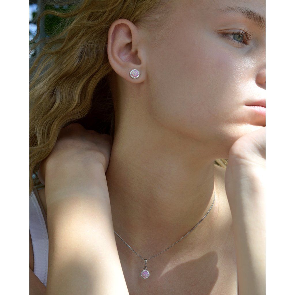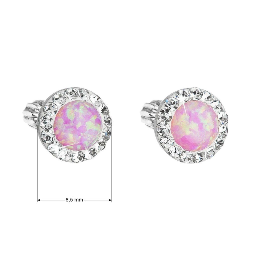 Strieborné náušnice s opálom a Preciosa kryštály 31317.1 ružové