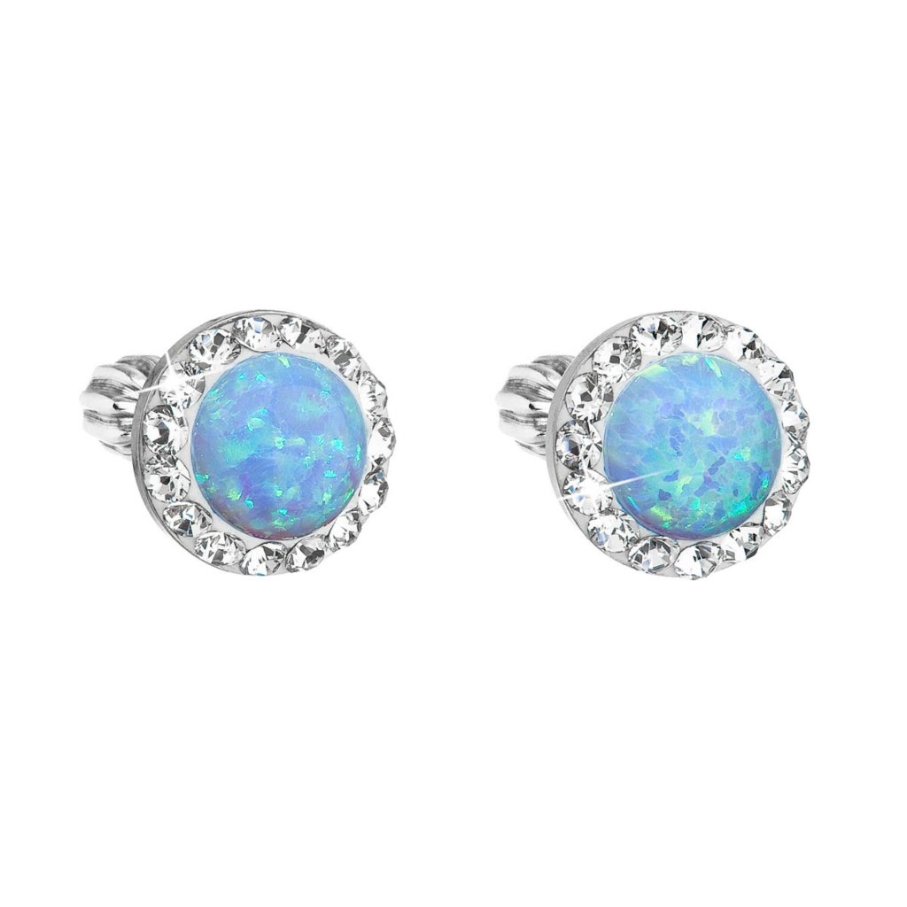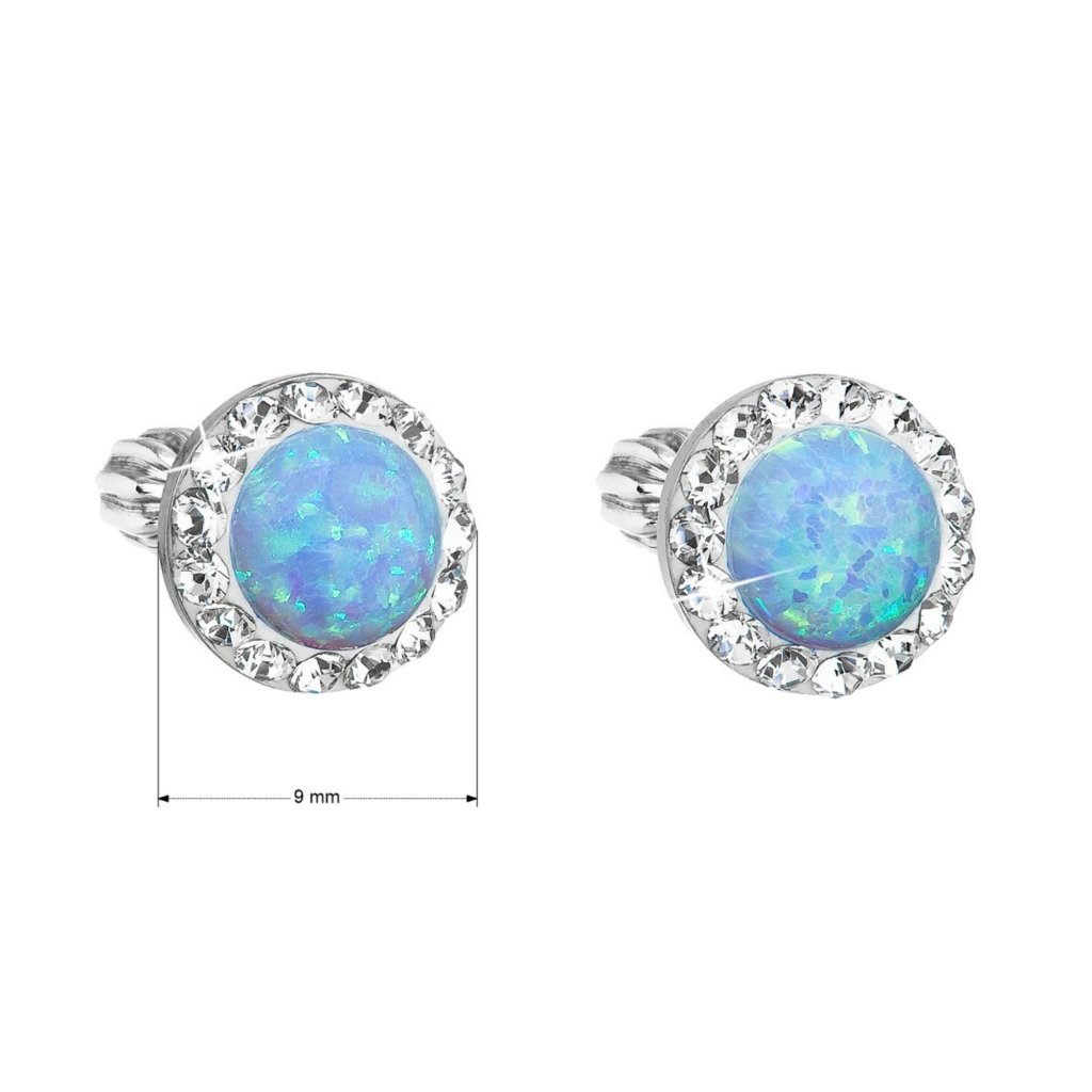 Strieborné náušnice s opálom a Preciosa kryštály 31317.1 svetlo modré