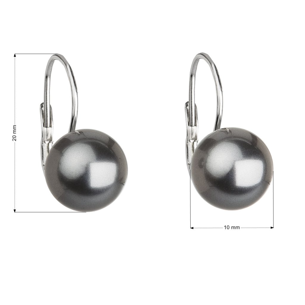 Parametre strieborných visiacich náušníc so Swarovski perlou šedé okrúhle 31143.3 grey