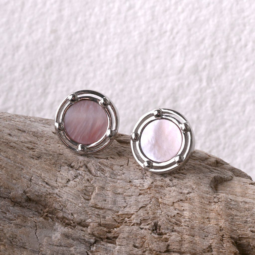 Strieborné náušnice s ružovou perleťou 11727.3