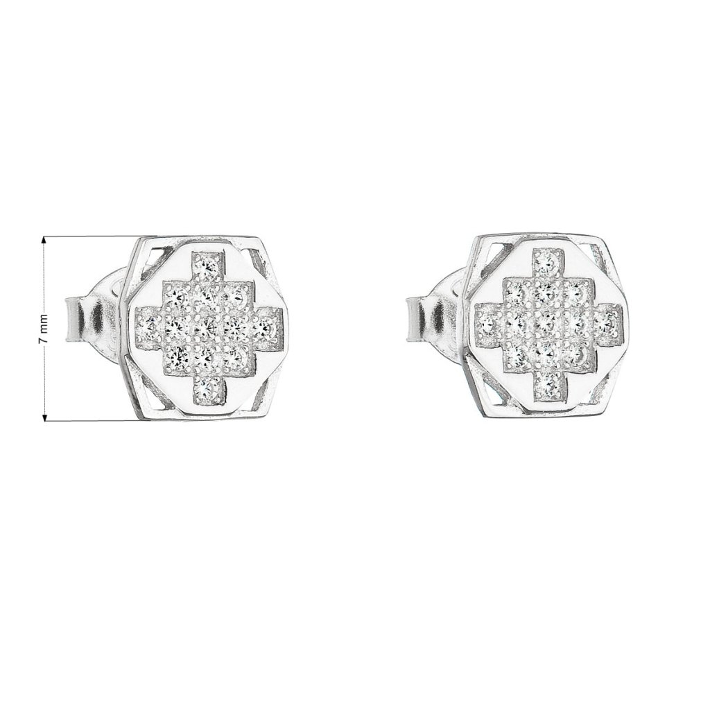 Parametre strieborných náušníc pecka so zirkónom biely štvorec 11050.1