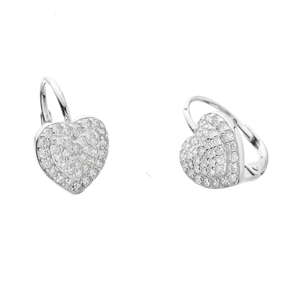 Náušnice v tvare srdiečok - pre romantické duše s vycibreným vkusom. Náušnice 11559.1 vyrobené z rhodiovaného striebra rýdzosti 925/1000 nie sú len krásne, ale aj praktické. Spoľahlivé zapínanie na klapku zaistí, že vám zostanú verné pri všetkých vašich dobrodružstvách. Každé srdiečko sme vysadili trblietavými zirkónmi, ktoré sa rozžiaria pri najmenšom pohybe - ako by zachytávali všetky šťastné momenty vášho dňa. Náušnice neobsahujú nikel , sú teda vhodné aj pre alergikov.