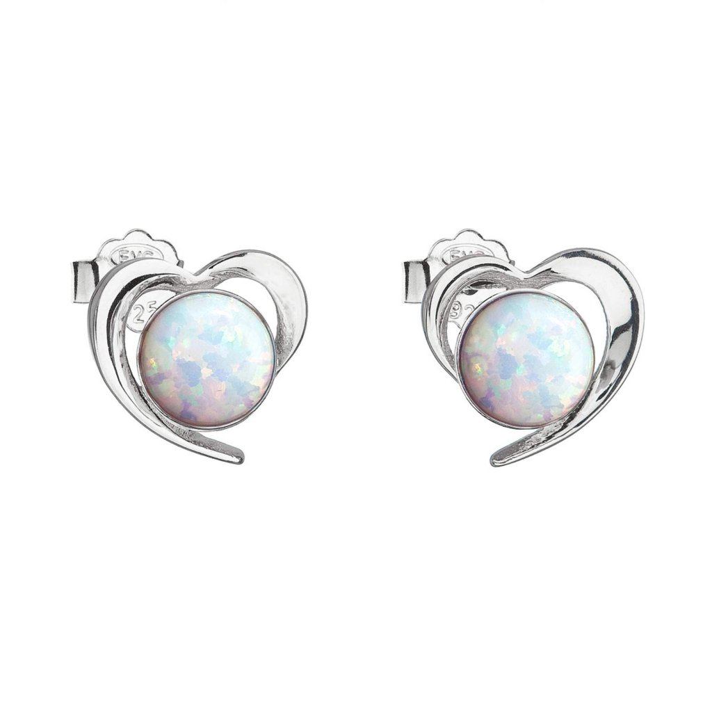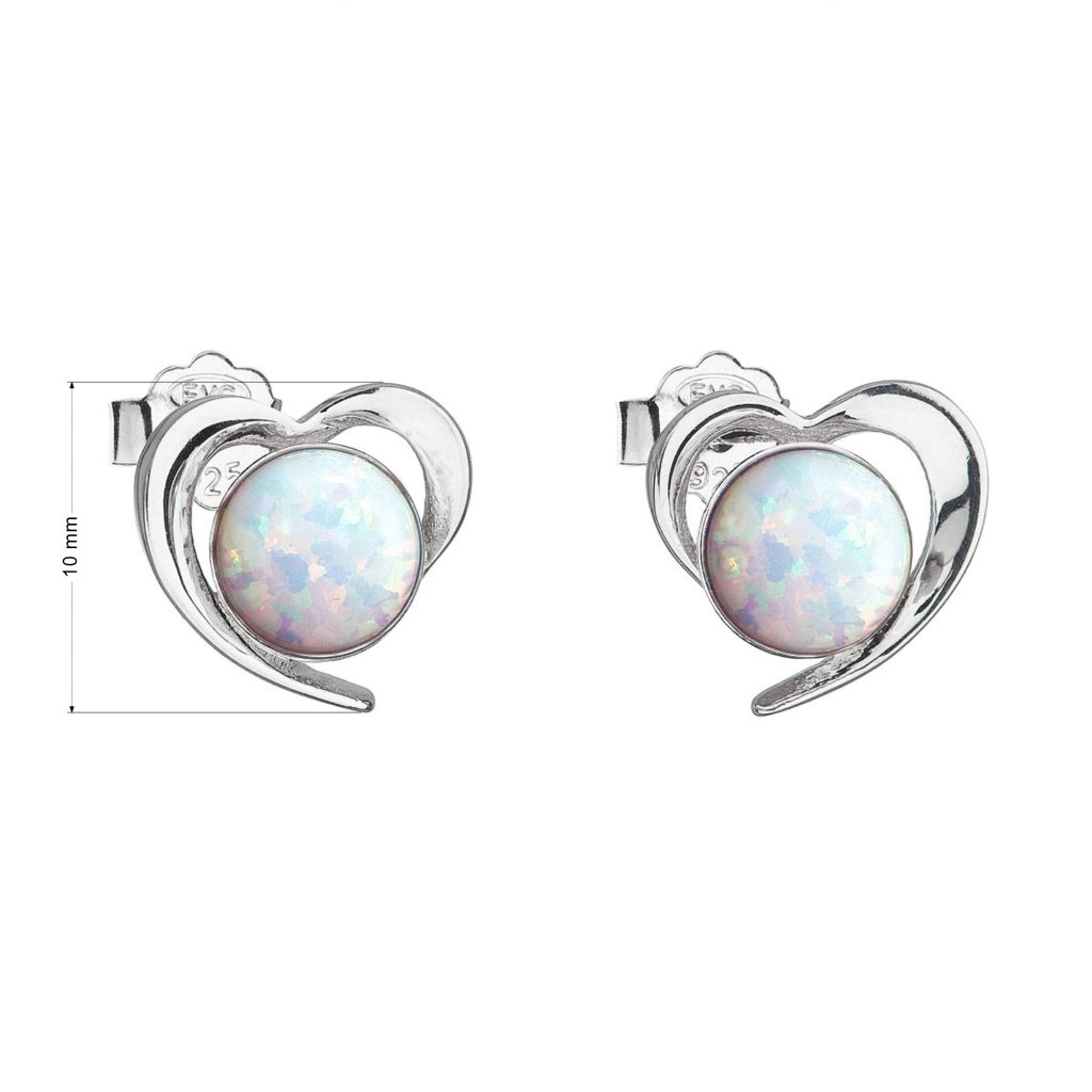 Strieborné náušnice srdca s bielym syntetickým opálom 31259.3 white
