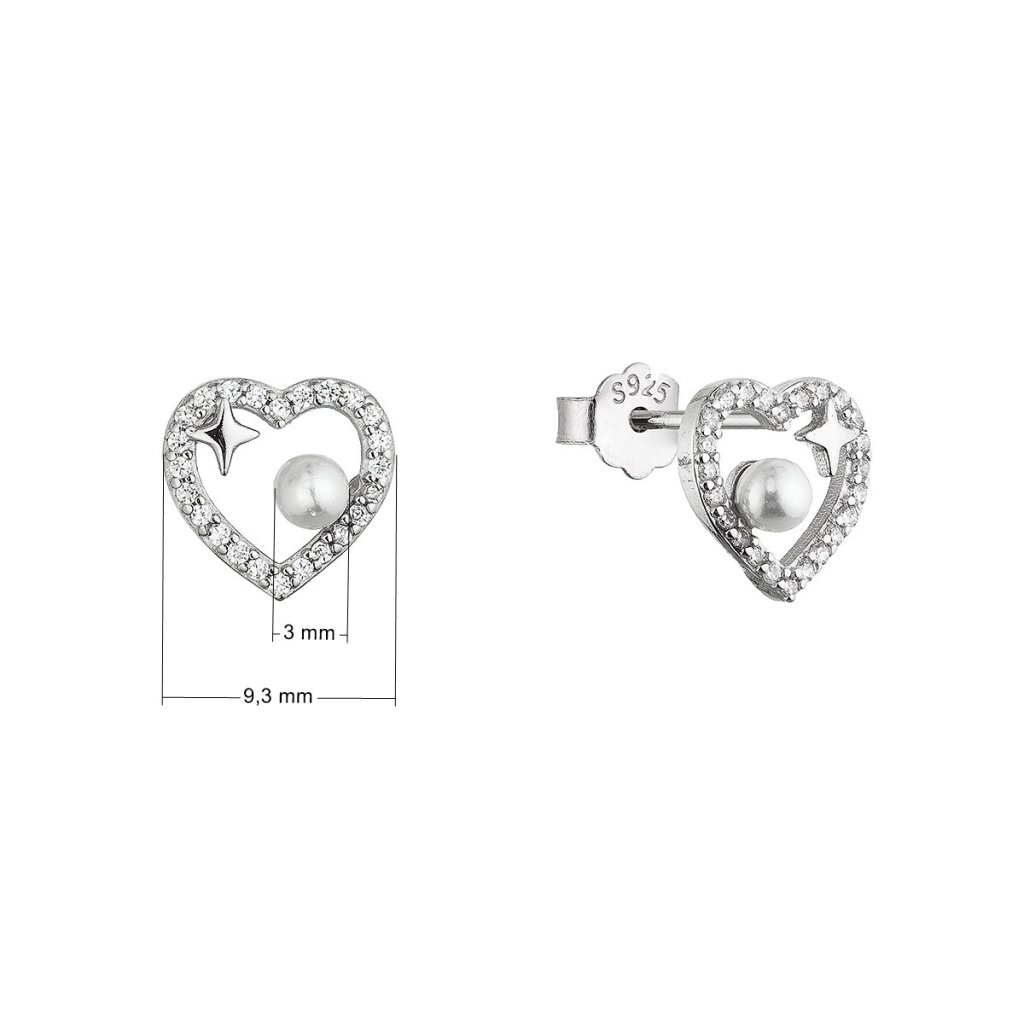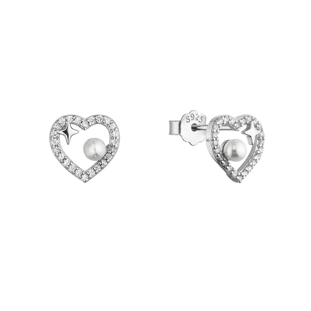 Strieborné náušnice srdiečka s perličkou 11805.1
