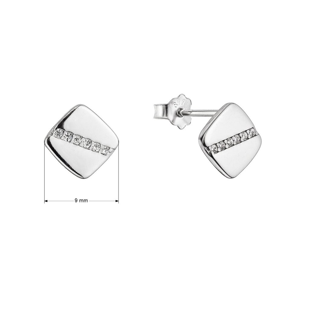 Strieborné náušnice štvorčeky so zirkónmi 11522.1 crystal