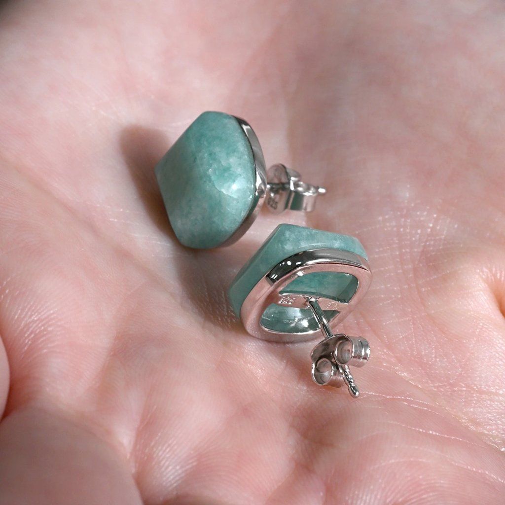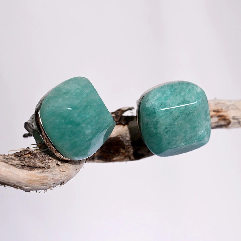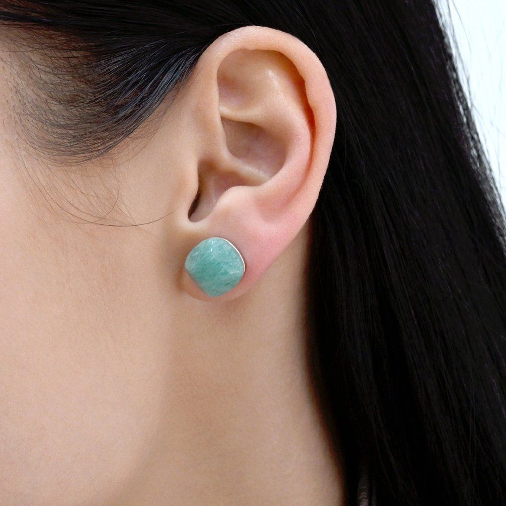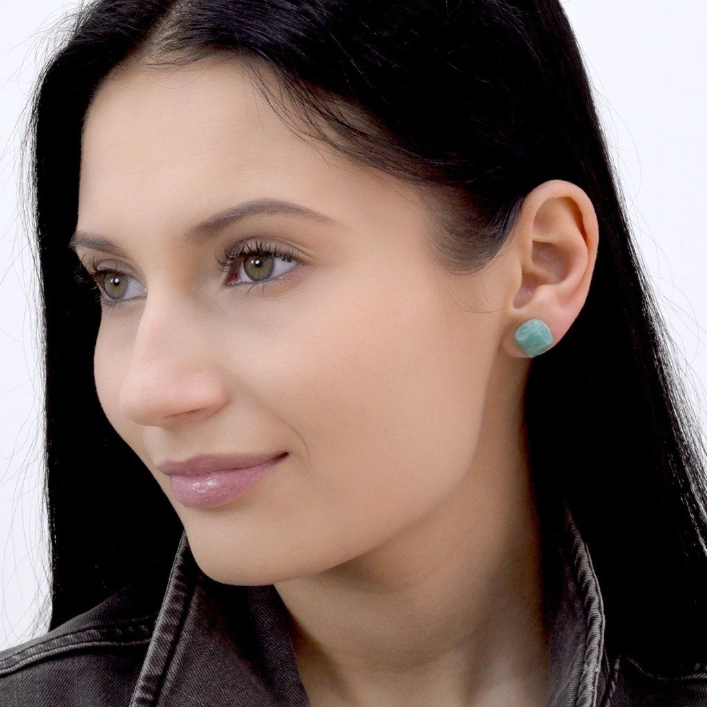 Strieborné náušnice štvorec s amazonitom 11729.3