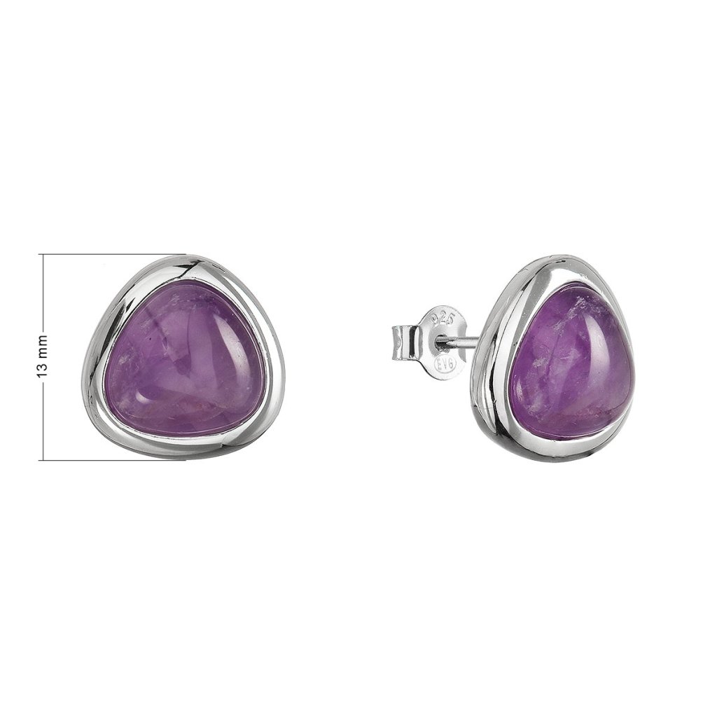 Strieborné trojuholníkové náušnice s pravým ametystom – tajomstvo vnútornej sily a duchovna.