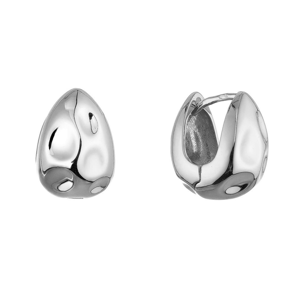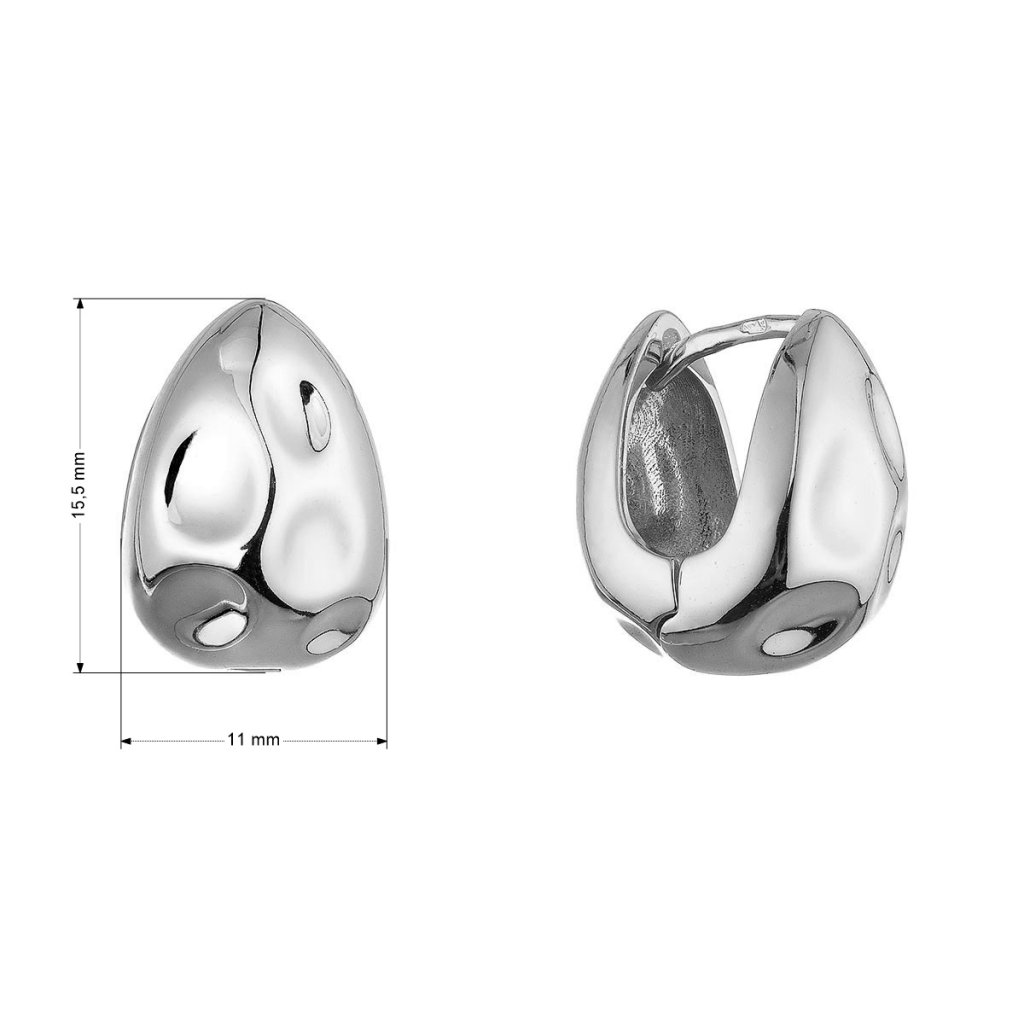 Výrazné strieborné náušnice okamžite upútajú svojim neobvyklým tvarom aj štruktúrovaným povrchom. Masívna silueta evokuje kvapku - elegantne zaoblený tvar, ktorý jemne predlžuje líniu ucha. Povrch kovu nie je úplne hladký – je ozvláštnený efektnými priehlbinami, ktoré hrajú so svetlom a vytvárajú jemný organický dojem. Každý pohyb hlavou tak náušnice premení na žiarivý detail.