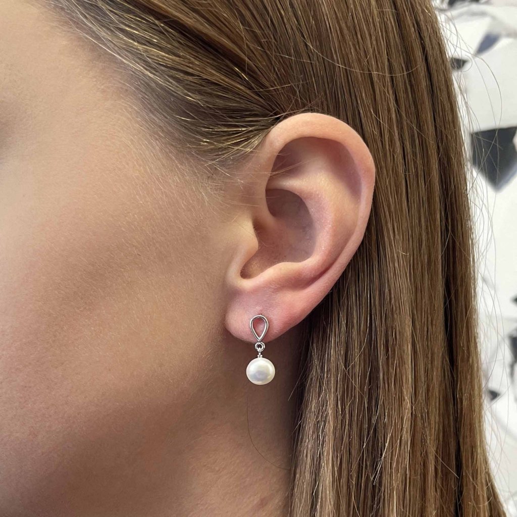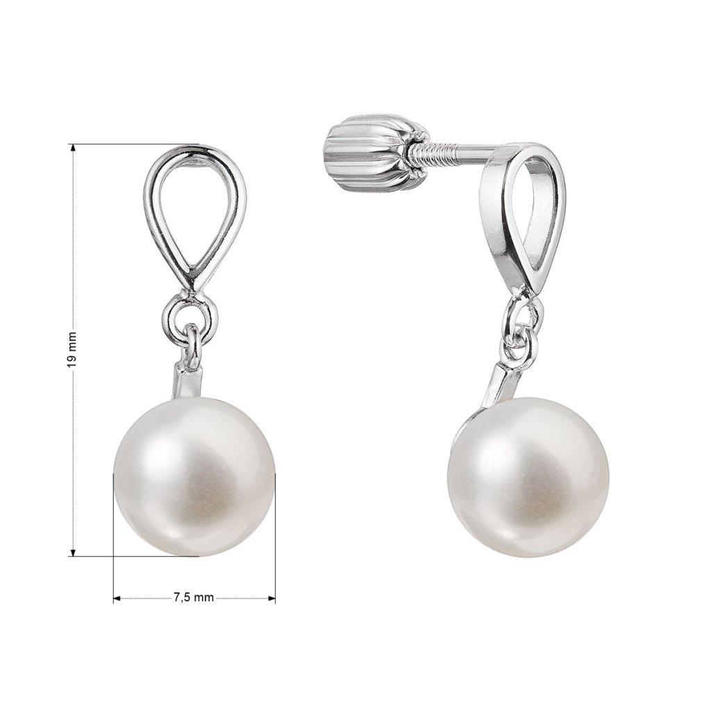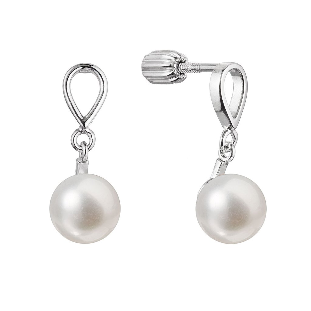 Strieborné visiace náušnice s voľne sa pohupujúcou bielou riečnou perlou na Vás upútajú pozornosť.Náušnice 21086.1B sú vyrobené zo striebra o rýdzosti 925/1000 vrátane povrchovej úpravy ródiom. Ródium ochráni šperk proti sčerneniu, zožltnutiu i poškriabaniu. Biela okrúhla riečna perla s priemerom 7,5 mm je kvality AA .