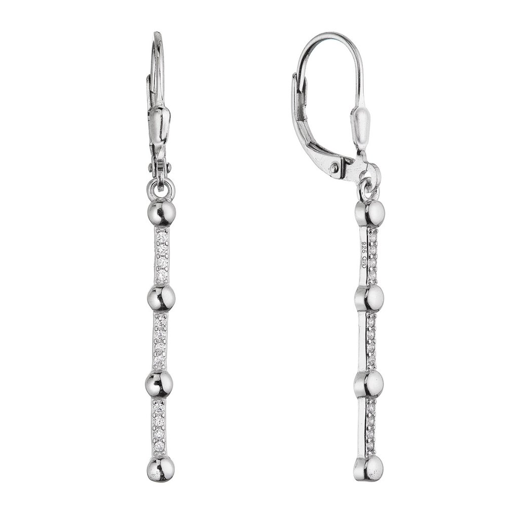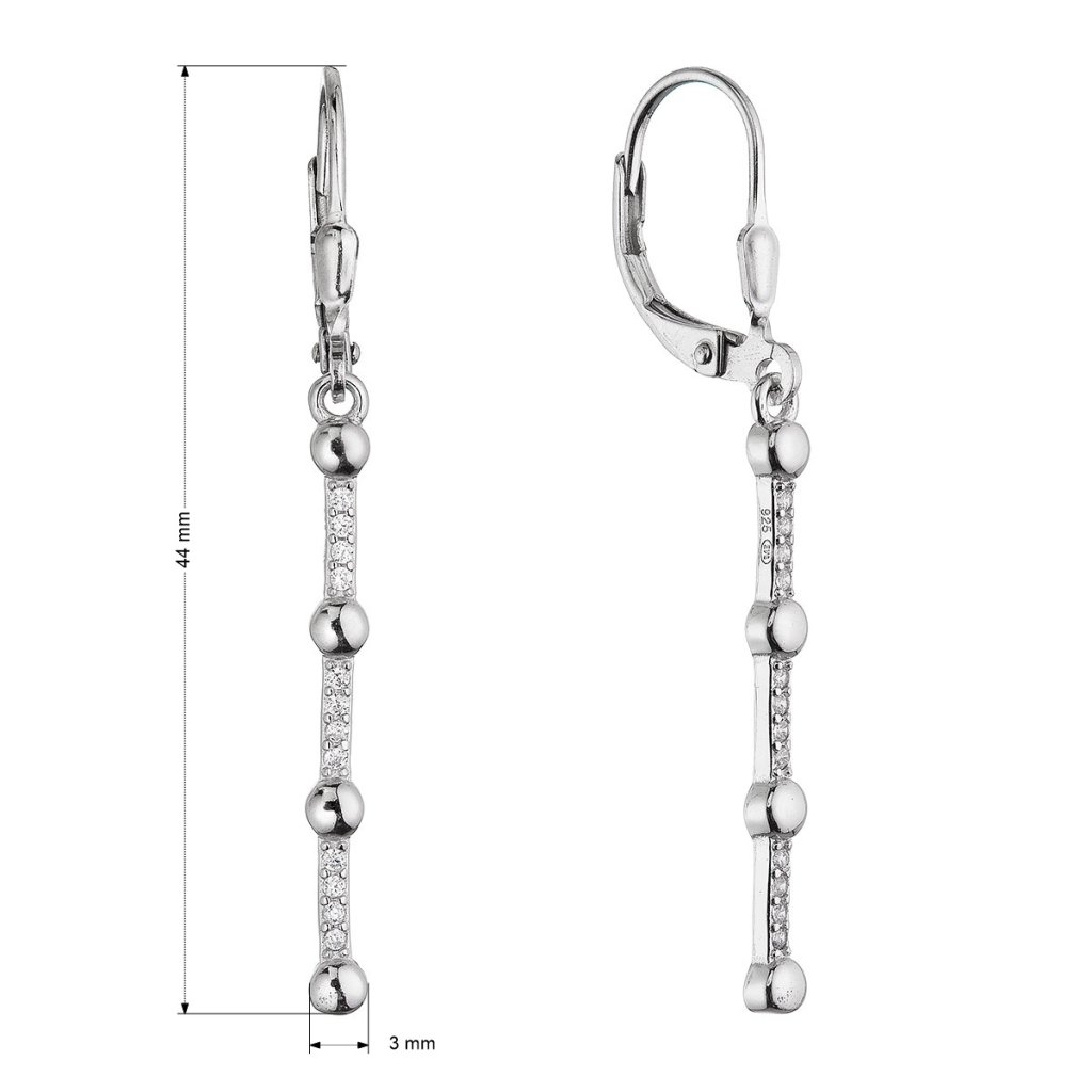 Netradičné elegantné visiace náušnice zo striebra okúzlia svojou dĺžkou. Dlhá štíhla tyčka zdobená trblietavými zirkónmi sa pri každom pohybe nádherne leskne, zatiaľ čo drobné strieborné guličky dodávajú náušniciam moderný a originálny vzhľad. Ľahkosť a vzdušnosť šperku podčiarkne vašu eleganciu pri každej príležitosti – či už na slávnostný večer, alebo ako štýlový doplnok k dennému outfitu. Perfektná voľba pre ženy, ktoré milujú jemné, ale neprehliadnuteľné šperky!