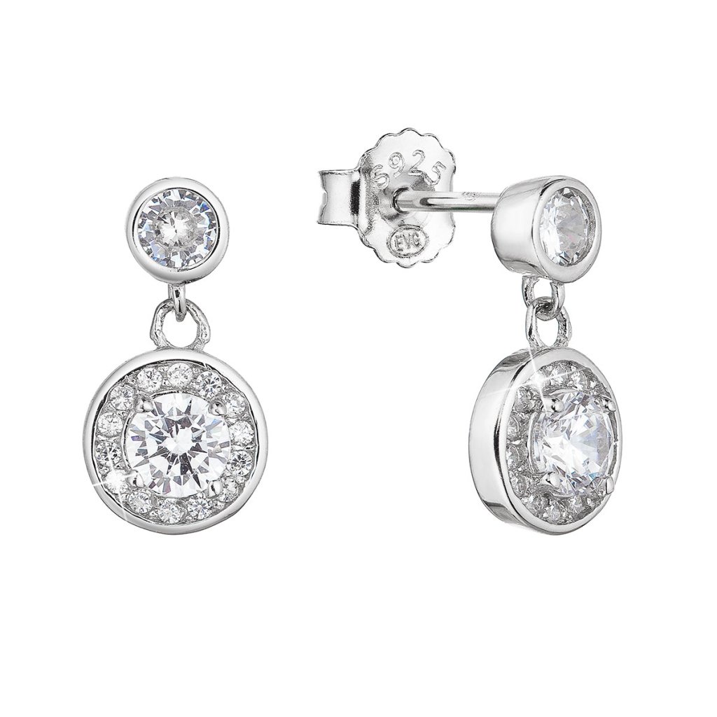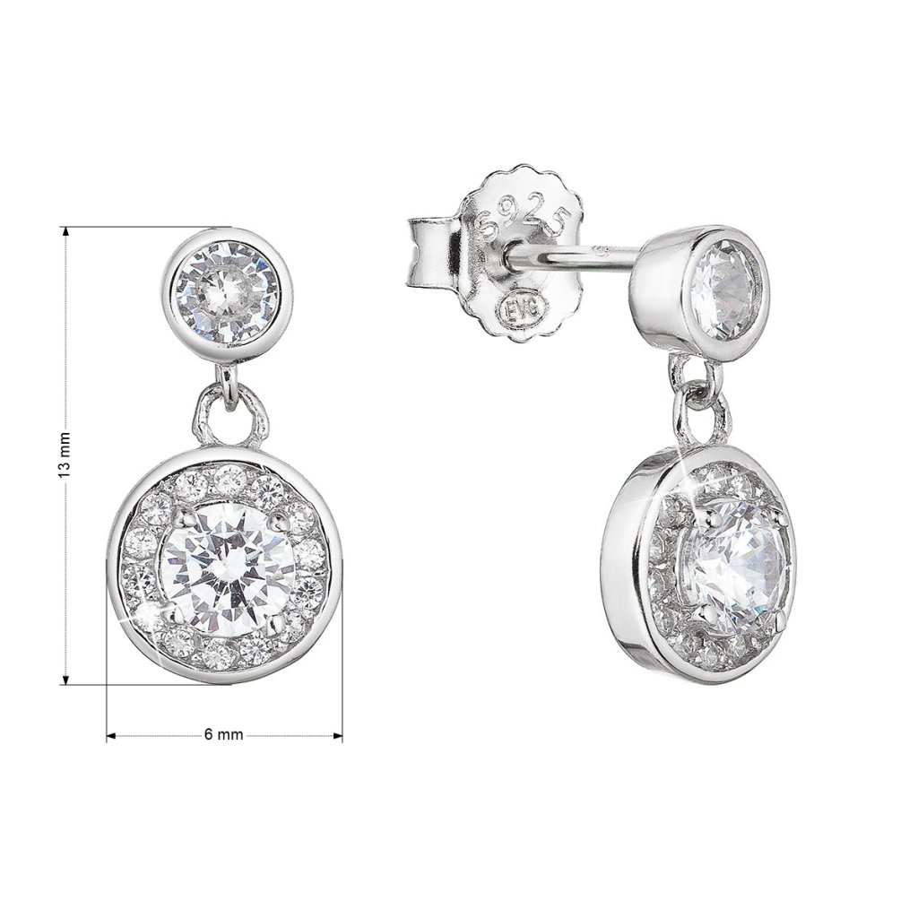 Parametre strieborných visiacich okrúhlych náušníc so zirkónmi 11429.1