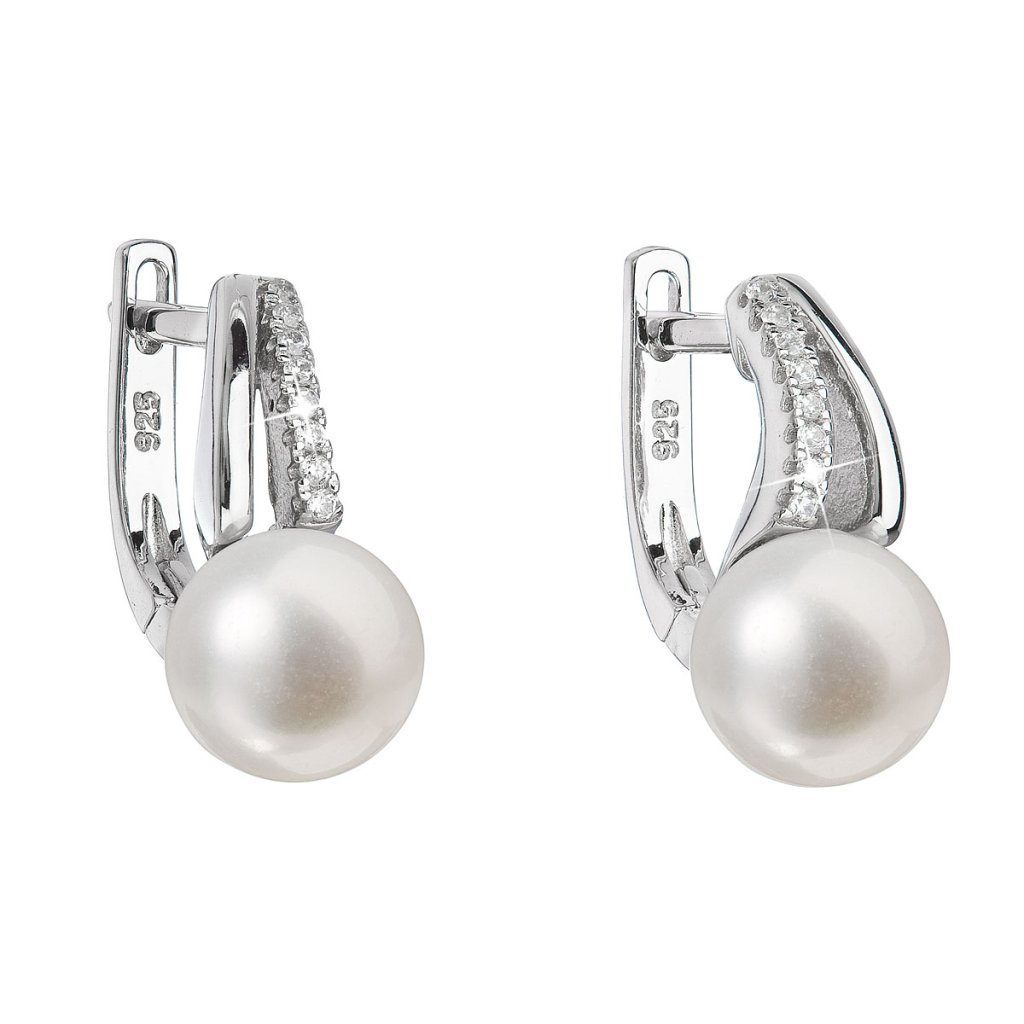Strieborné náušnice visiace s bielou riečnou perlou 21025.1