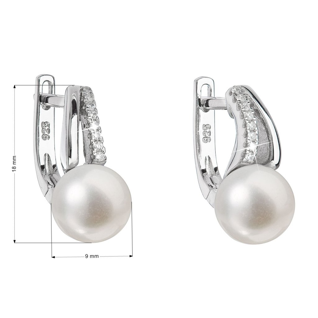 Parametre strieborných visiacich náušníc s bielou riečnou perlou 21025.1